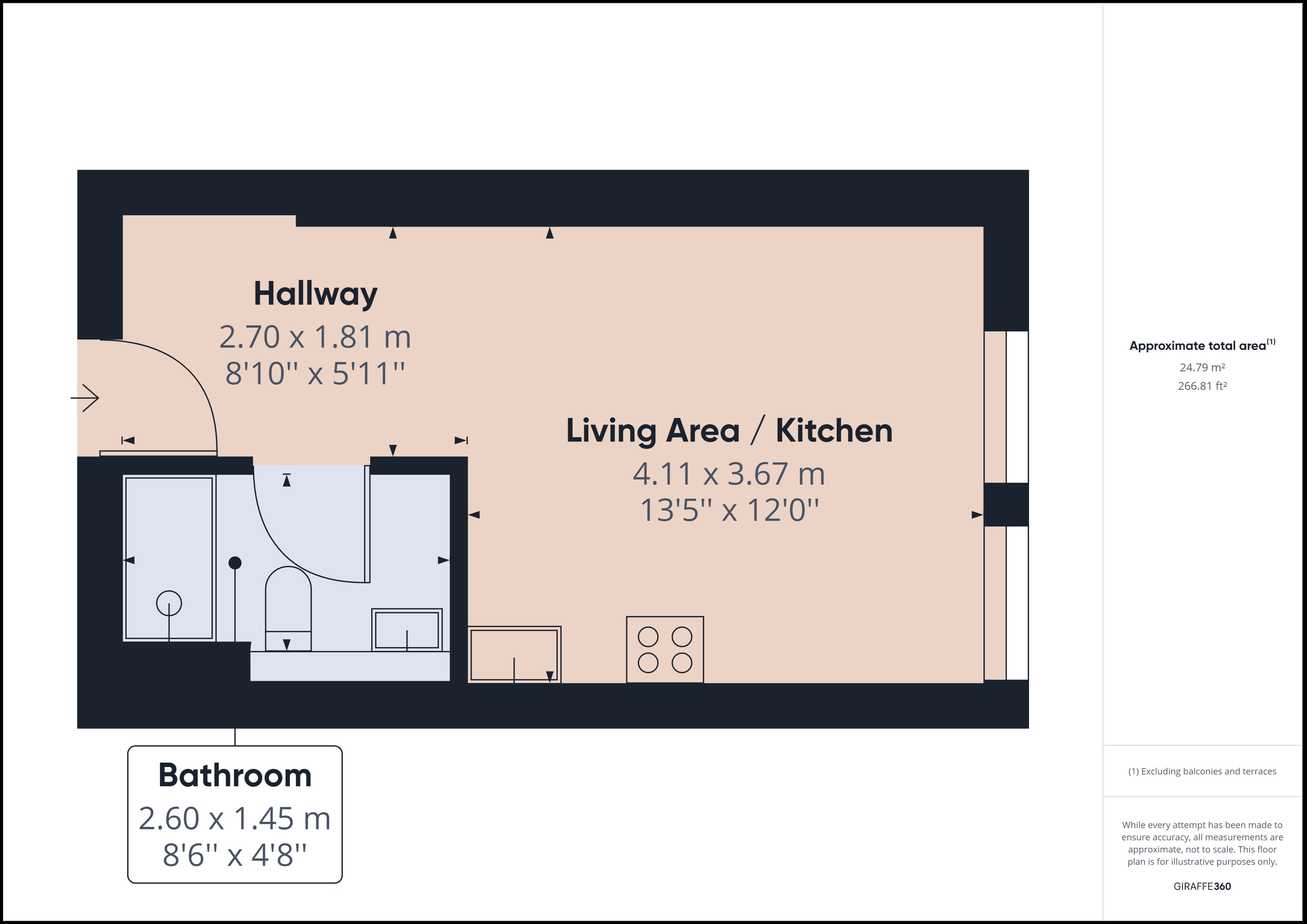 This is a studio flat with an open-plan kitchen/living room. This studio has a designer fitted kitchen with ceramic hob, microwave and Siemens refrigerator and dishwasher. The bathroom has high-quality fittings. An air-conditioning-friendly heating and cooling system has been installed.