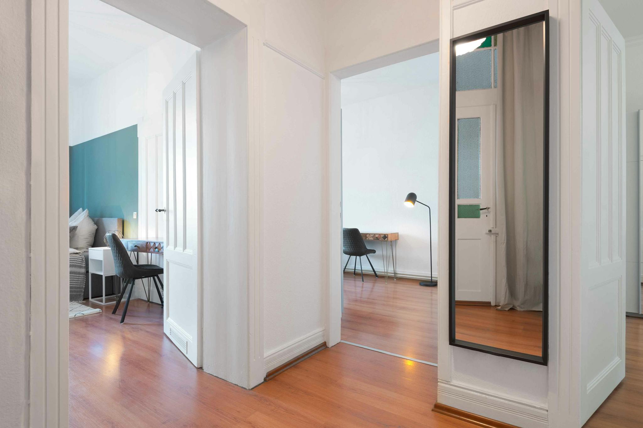 Live in a quiet area of Frankfurt with easy access to public transportation and many possibilities to go out. The area is lined with numerous shops, bars and restaurants. The apartment convinces with an entrance area and a modern eat-in kitchen, where you can enjoy your breakfast in the morning.