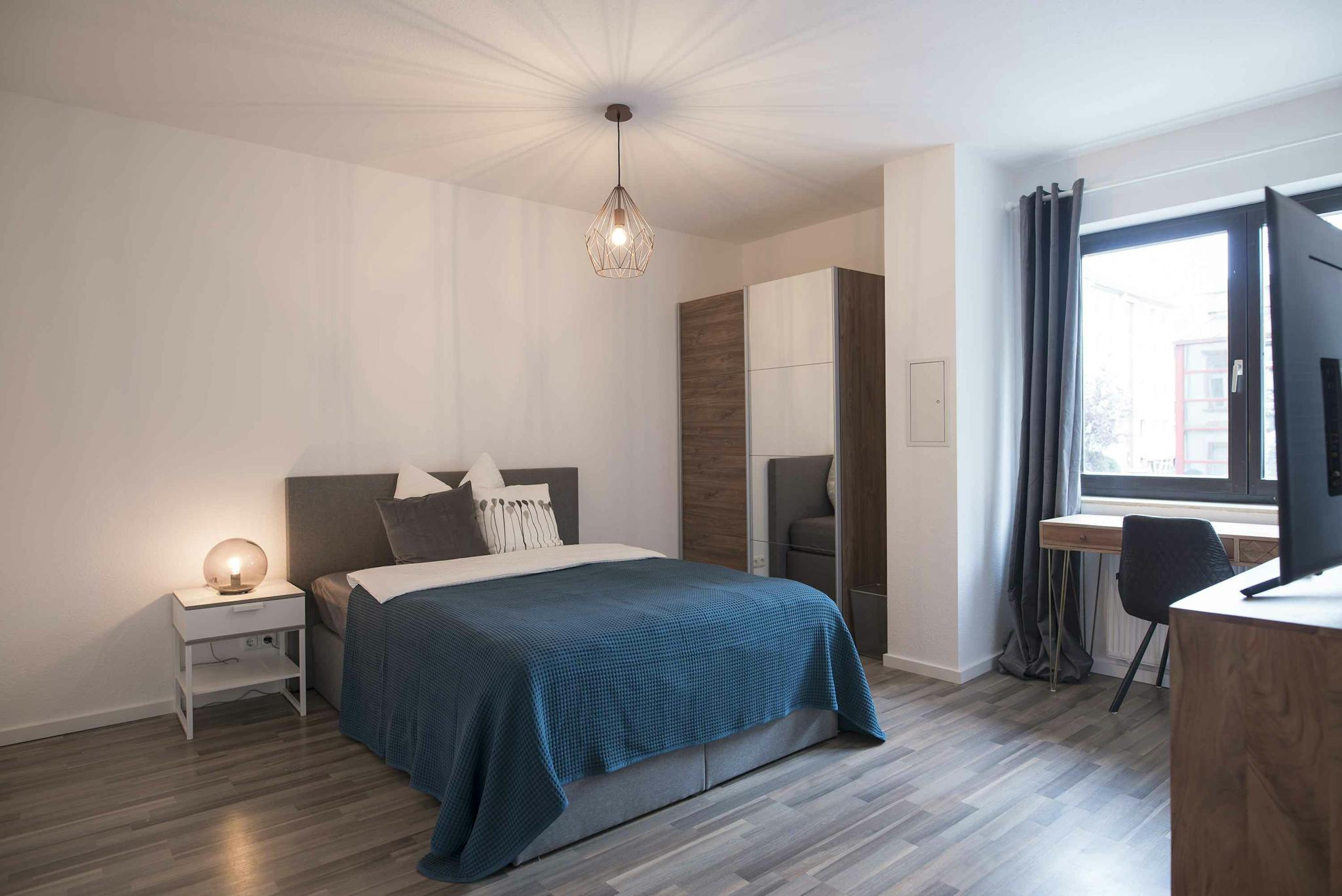 Live in a very popular quarter of Frankfurt, with a mix of students and old-established. Next to the apartment, there is a big park that invites to beautiful walks. The renovated old-building convinces with a spacious hallway and a bathroom with shower and corner tub. There is an eat-in kitchen and a common area to chill, eat and get together.