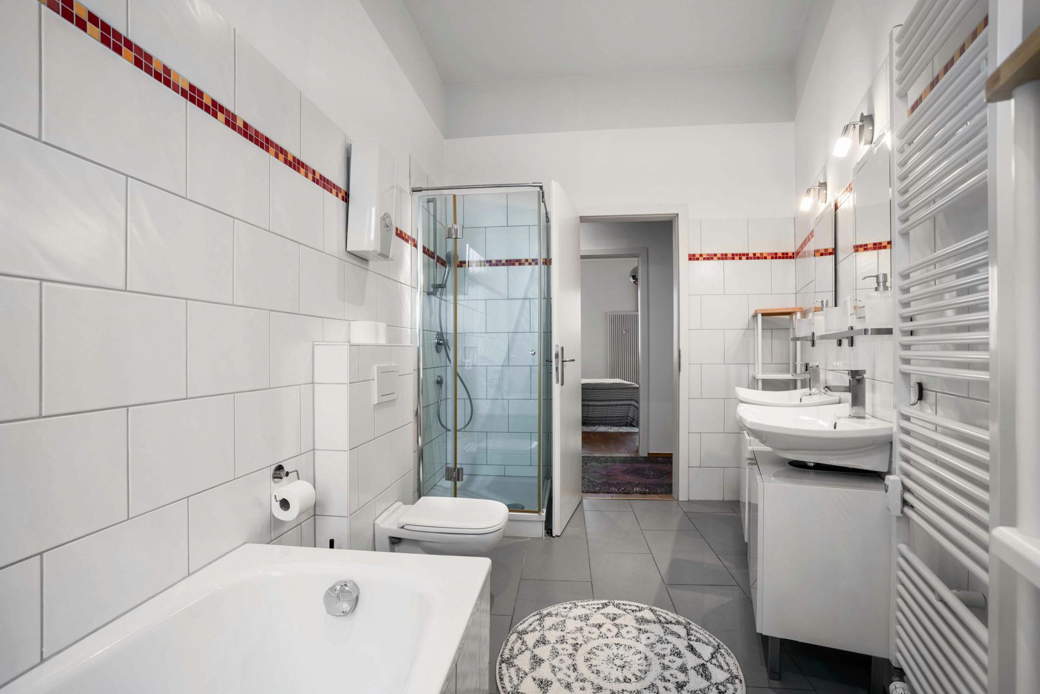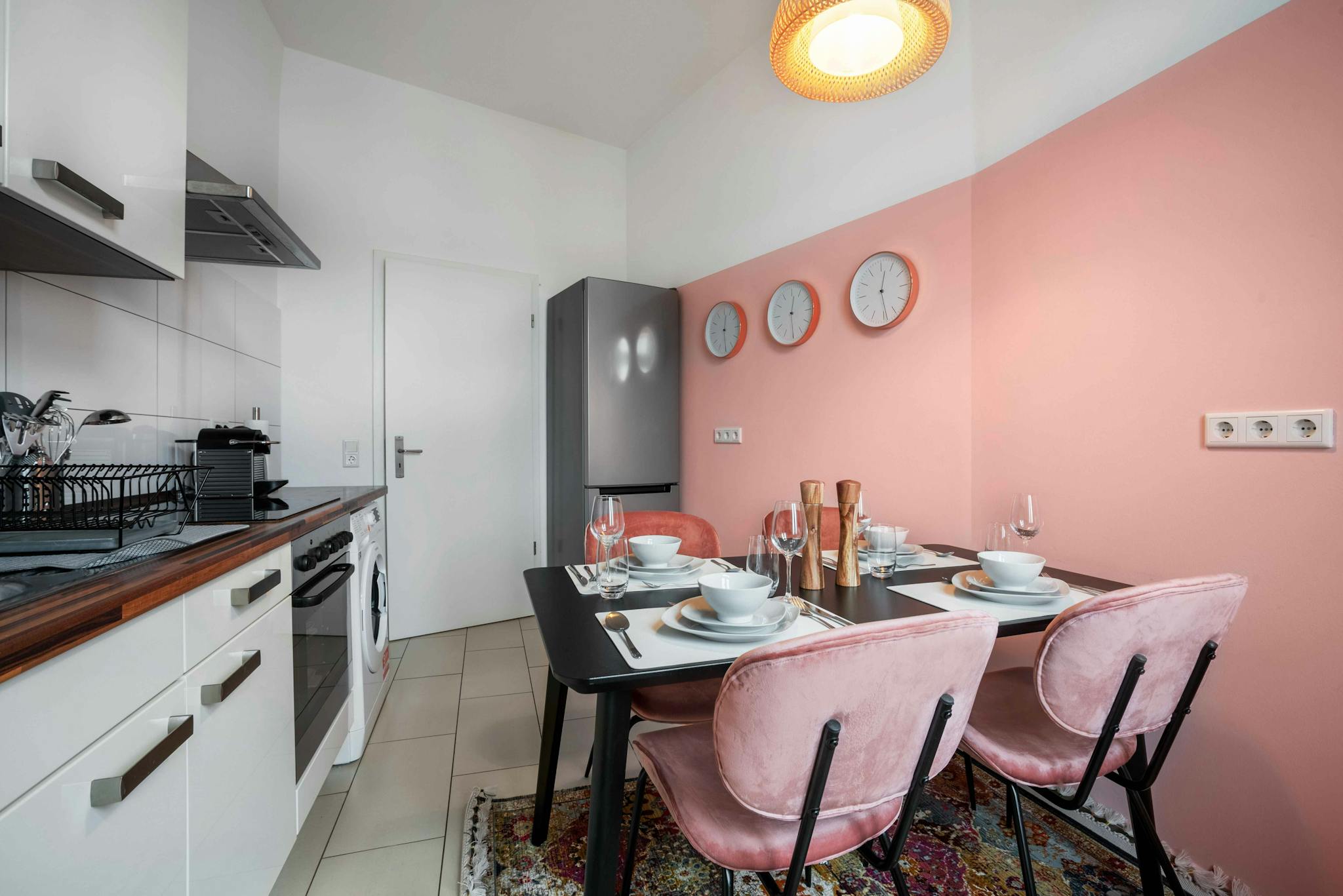 Live in one of the most popular districts of Frankfurt, Bockenheim. There are numerous shops, bars and restaurants and the easy access to public transportation shortens the way to the inner city enormously. Our modern 4er-WG/Co-Living apartment in a stylish old building awaits your move.