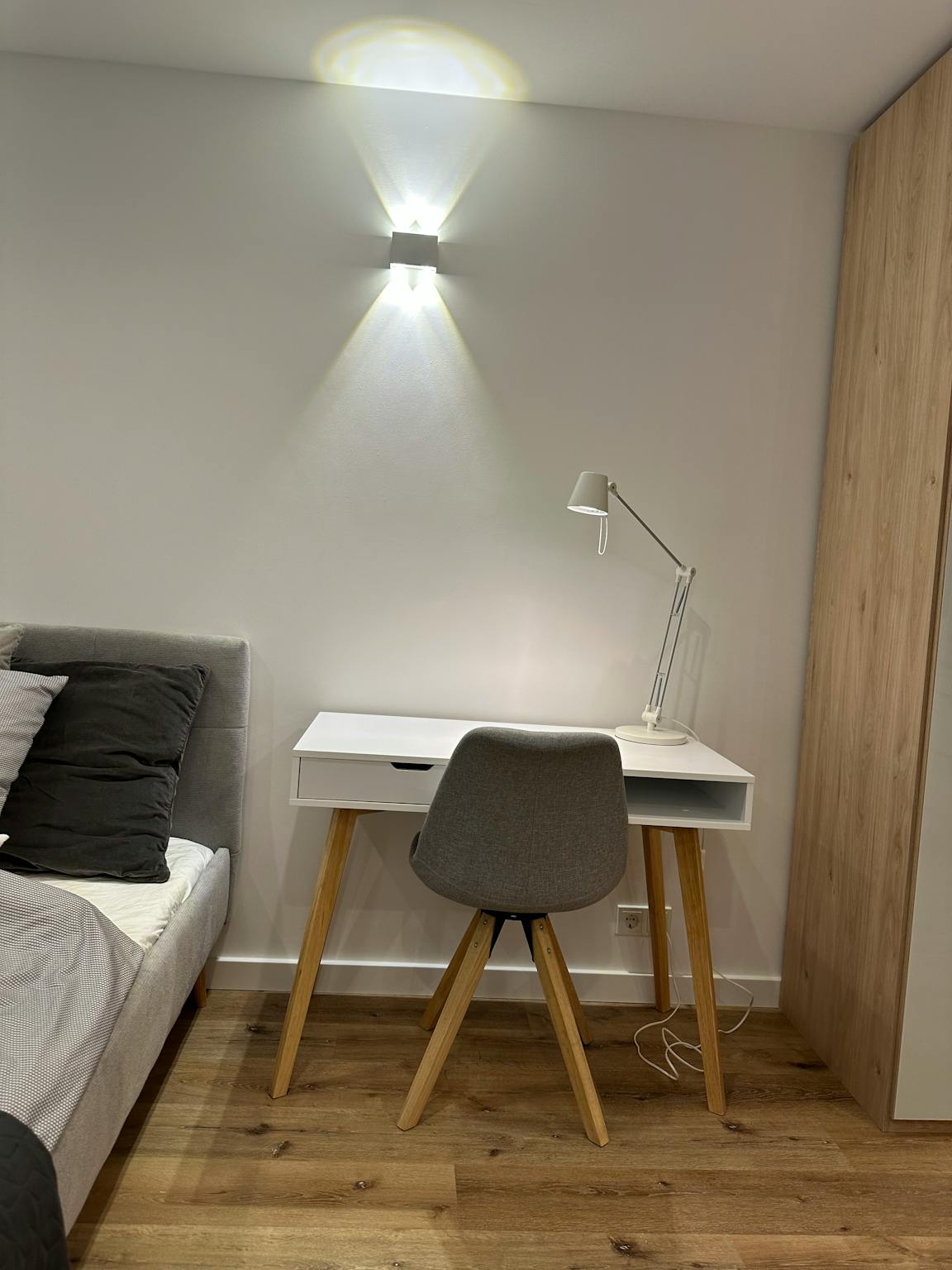 Ein bequemes 1,40 m breites Bett, ein praktischer Schreibtisch sowie eine moderne TV-Wand mit Samsung Smart TV stehen zur Verfügung.