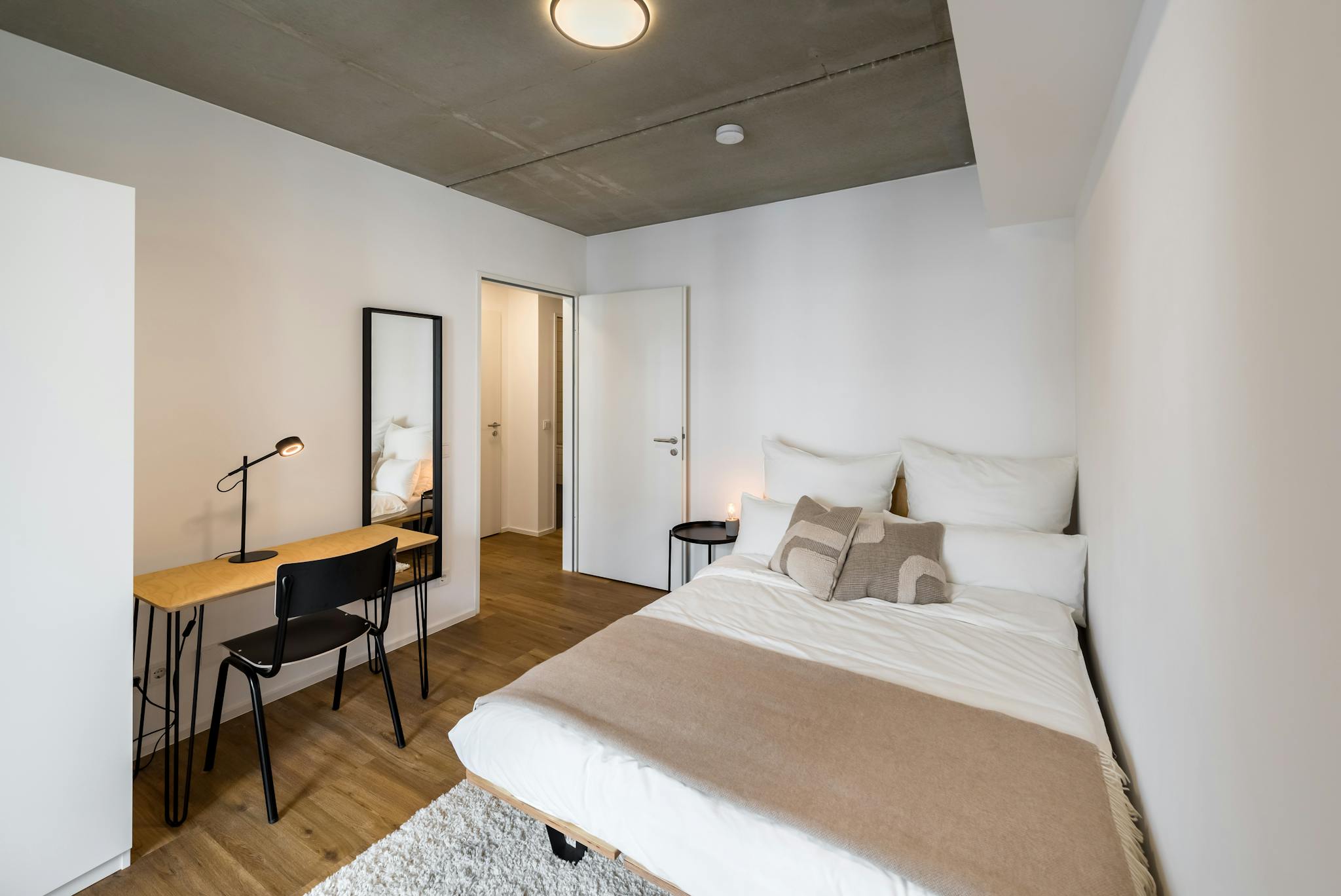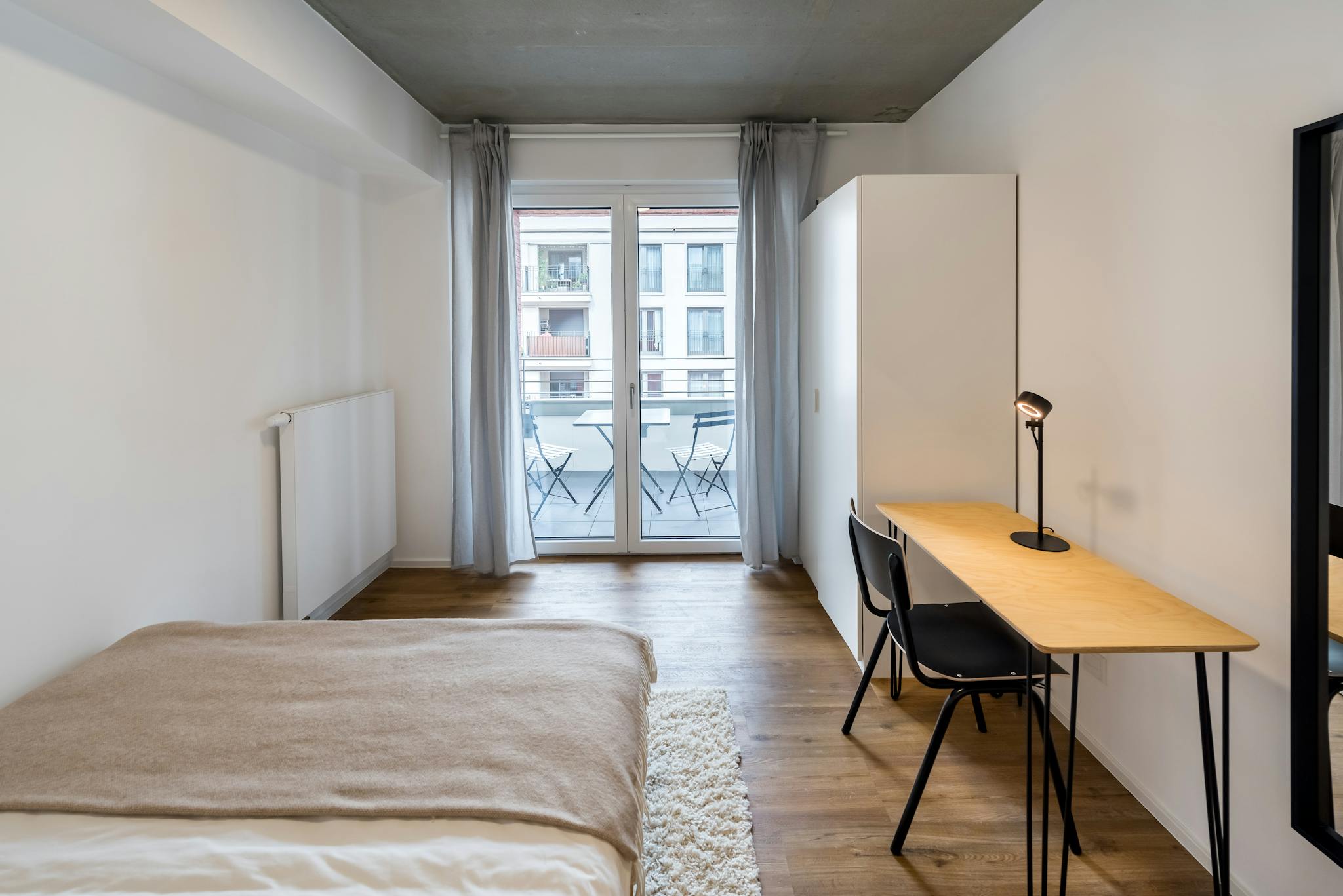 Our rooms come fully furnished with everything you need for a comfortable daily life, such as a bed with a premium mattress with bedsheets, pillows, and duvets, a large wardrobe, table, and chair for work with a lamp. Some rooms also have a private or shared balcony or terrace for you to enjoy the sunshine.