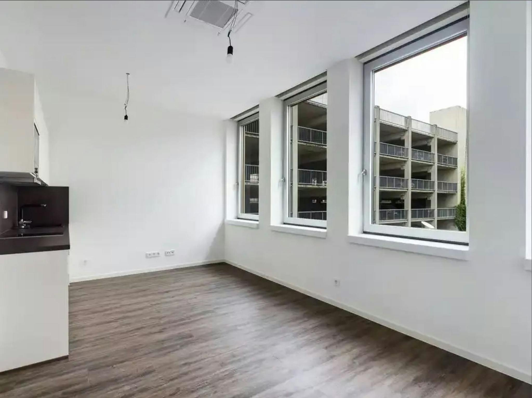 This is a studio flat with an open-plan kitchen/living room. This studio has a designer fitted kitchen with ceramic hob, microwave and Siemens refrigerator and dishwasher. The bathroom has high-quality fittings. An air-conditioning-friendly heating and cooling system has been installed.