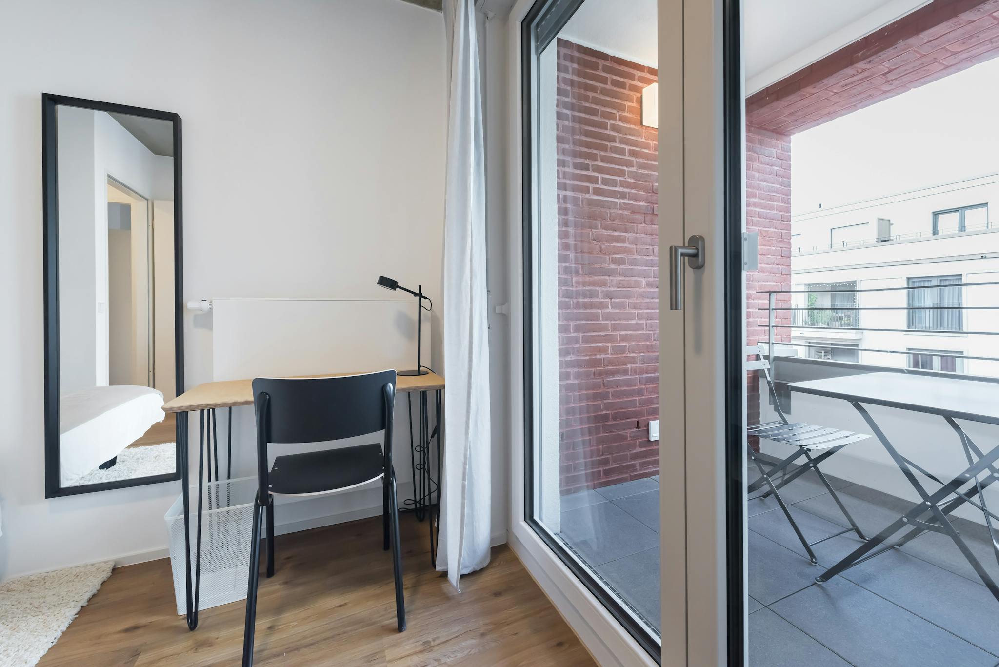 Our rooms come fully furnished with everything you need for a comfortable daily life, such as a bed with a premium mattress with bedsheets, pillows, and duvets, a large wardrobe, table, and chair for work with a lamp. Some rooms also have a private or shared balcony or terrace for you to enjoy the sunshine.