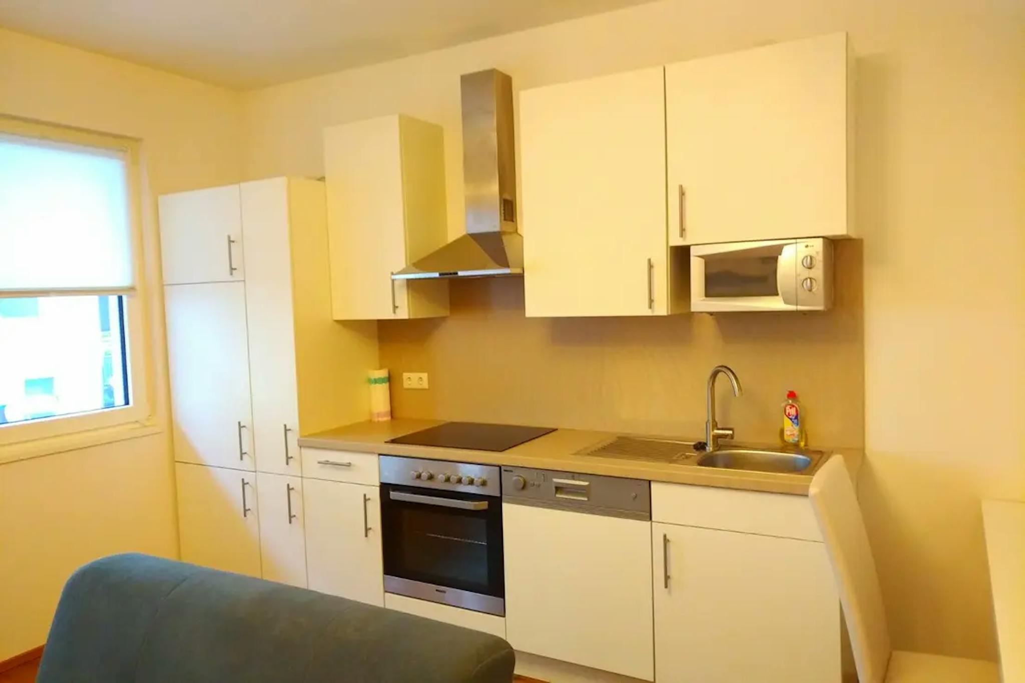 Die Wohnung besteht aus einem offenen Wohnzimmer mit integrierter Küche, einem Schlafzimmer, Bad mit Dusche, einem Kellerraum und einem Waschraum im Keller.