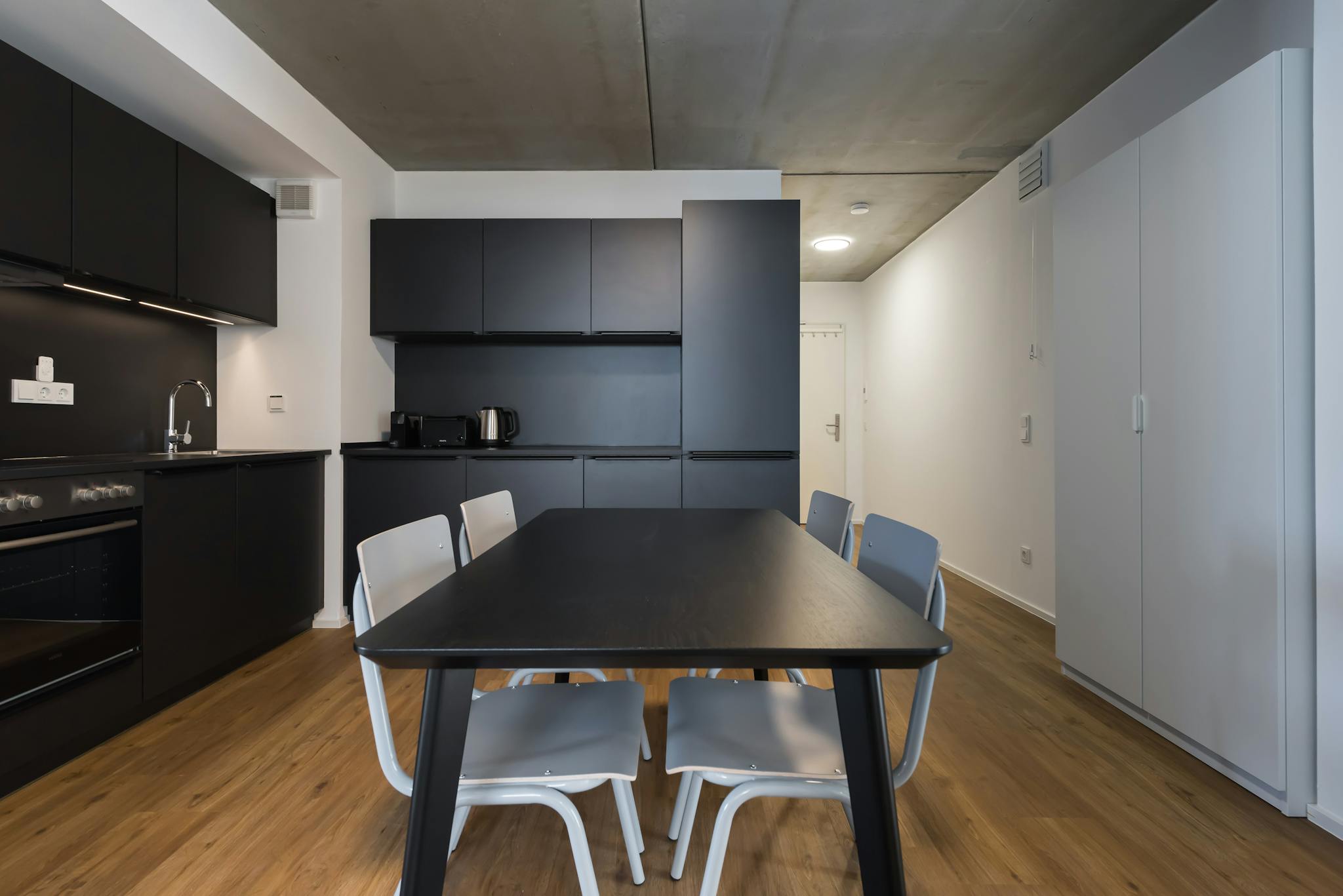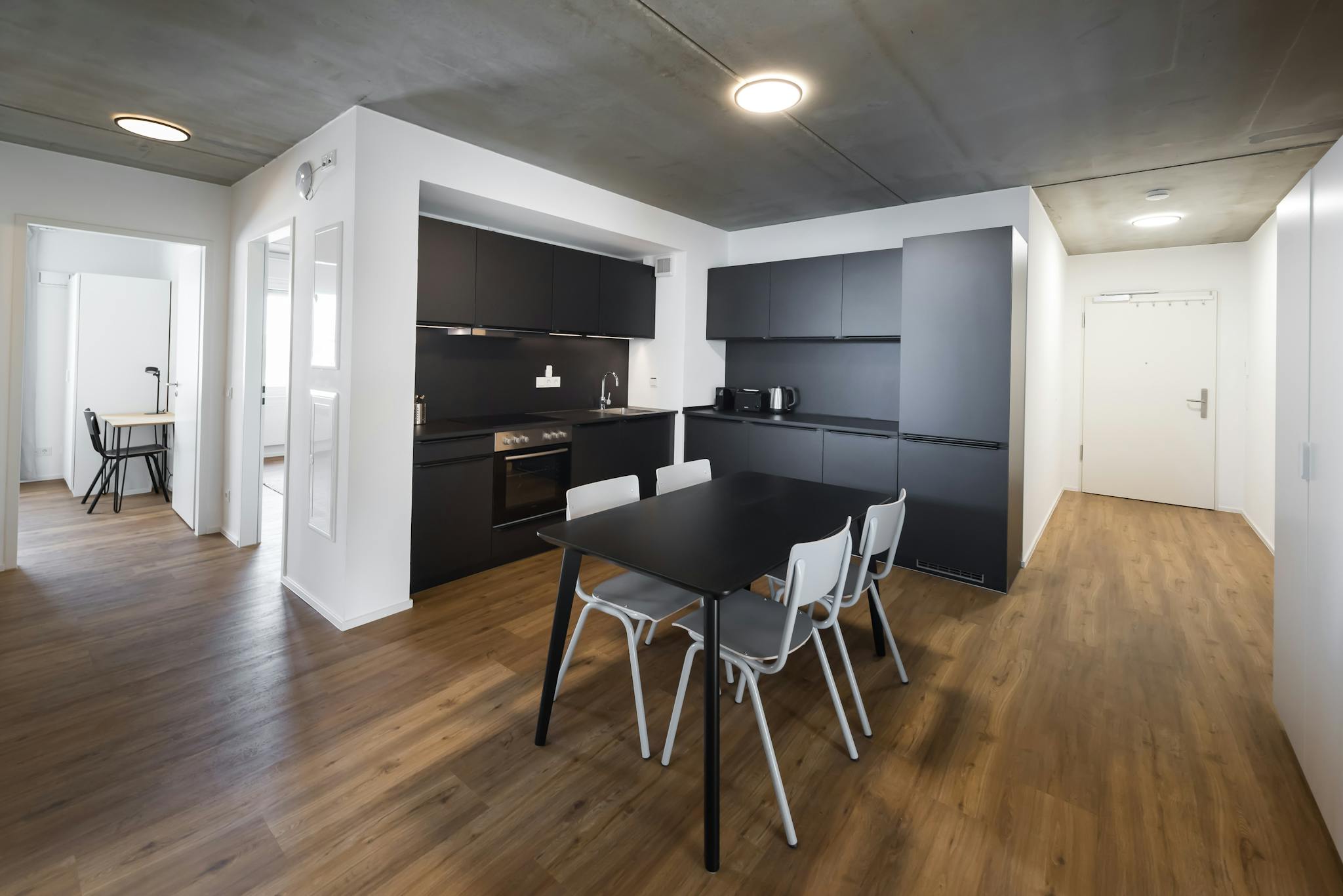 Each flat has a fully equipped modern kitchen that has everything from pans to a coffee machine, dishwasher, and oven. All apartments have spacious bathrooms that you will be sharing with your flatmates.
