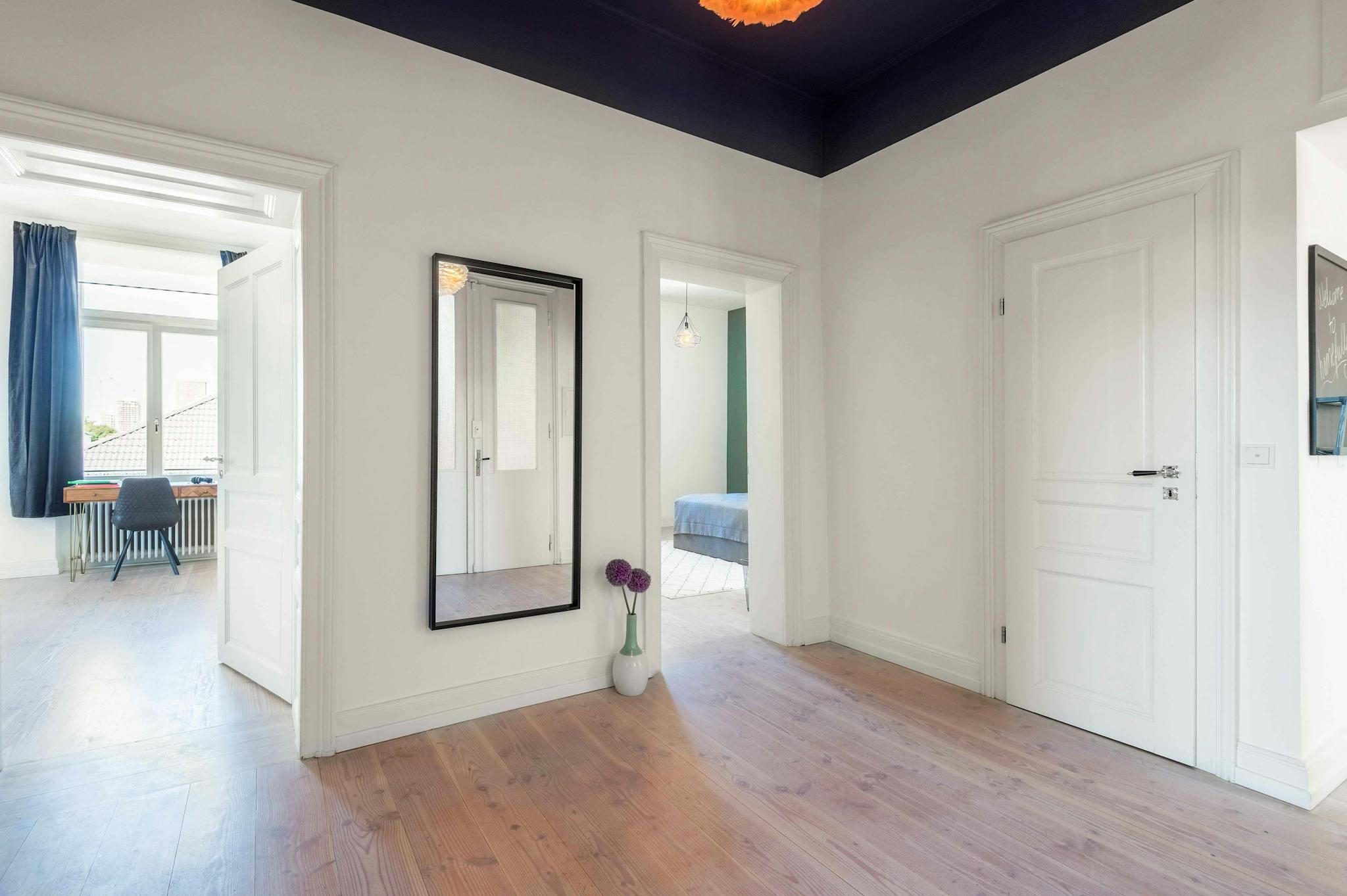 Live in a popular quarter of the city, with very good infrastructure, lined with shops, bars and restaurants. The inner city is close by and there is easy access to public transportation. This spacious apartment convinces with a huge hallway and generously designed rooms. Moreover, the kitchen has a dining area where you can enjoy common dinners.
