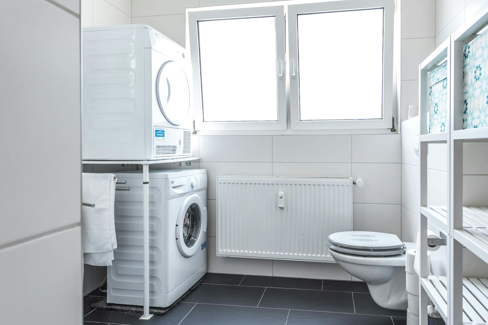 Die Küche mit einer modernen Küchenzeile ausgestattet mit Geschirr, Besteck und Kochutensilien. Das Bad ist ein modernes Duschbad mit Waschmaschine und ein zusätzliches WC steht ebenfalls zur Verfügung.