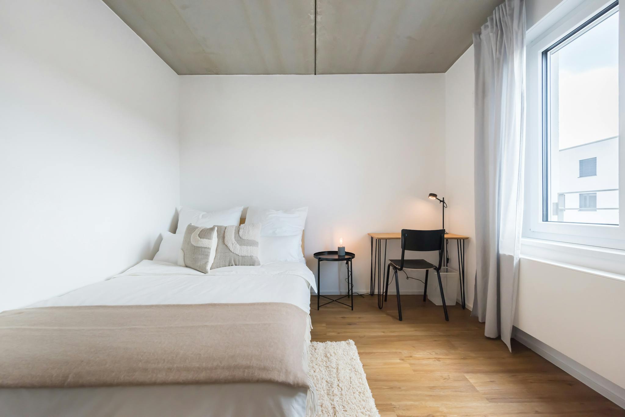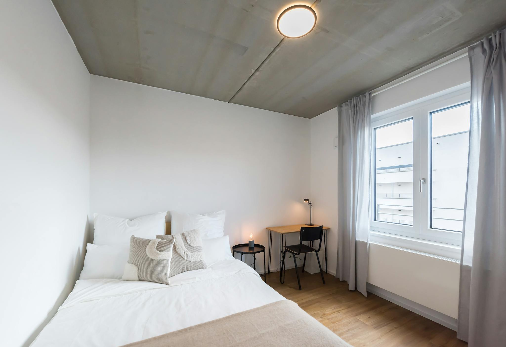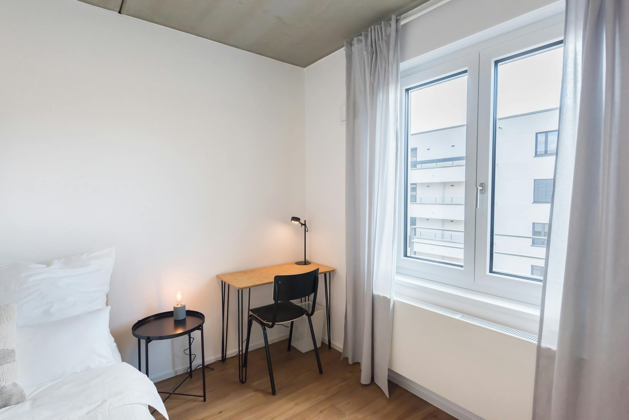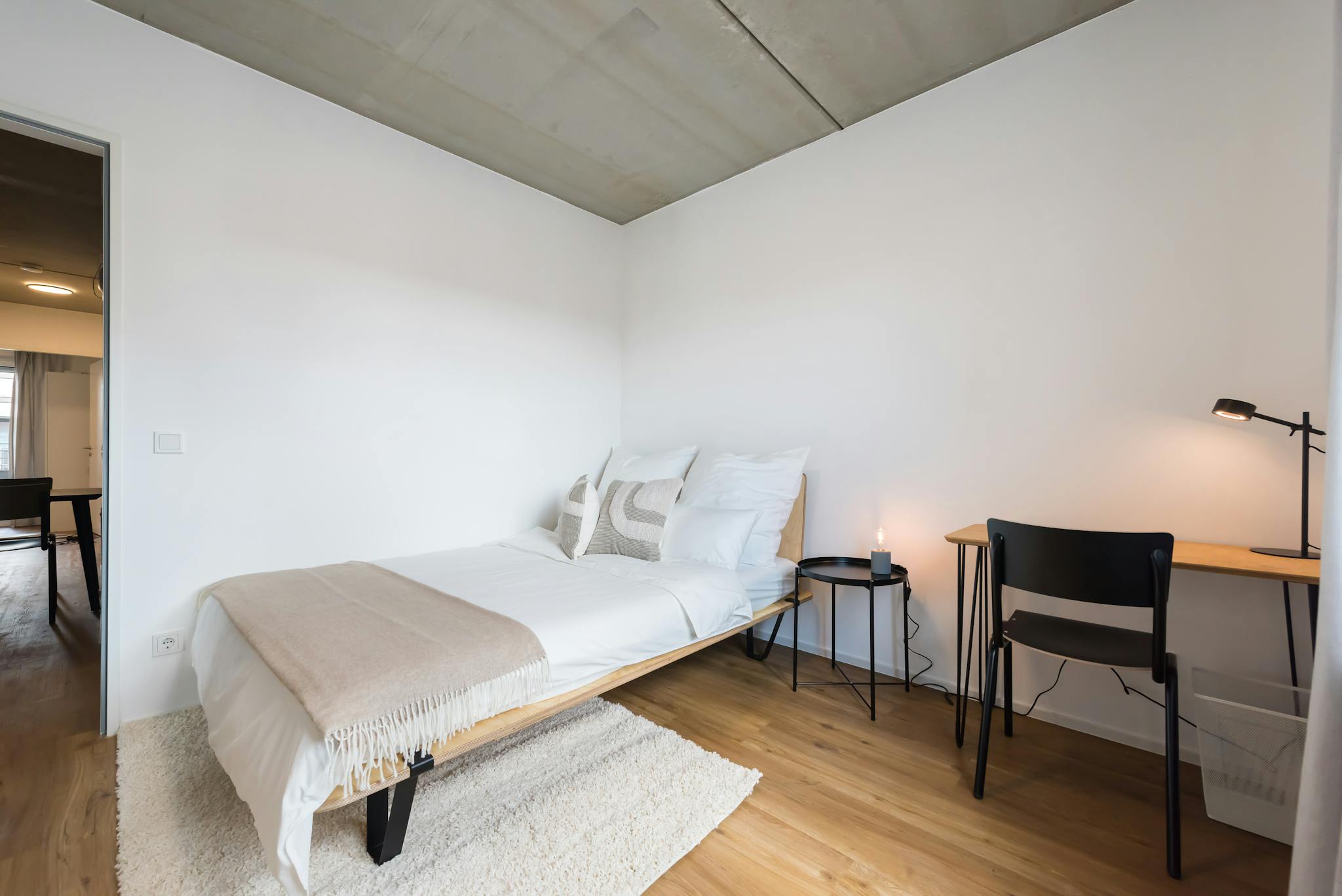 Our rooms come fully furnished with everything you need for a comfortable daily life, such as a bed with a premium mattress with bedsheets, pillows, and duvets, a large wardrobe, table, and chair for work with a lamp. Some rooms also have a private or shared balcony or terrace for you to enjoy the sunshine.