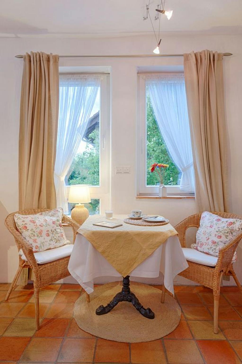 The friendly entrance through the courtyard with hedges, bushes and fragrant flowers puts you in a southern world.