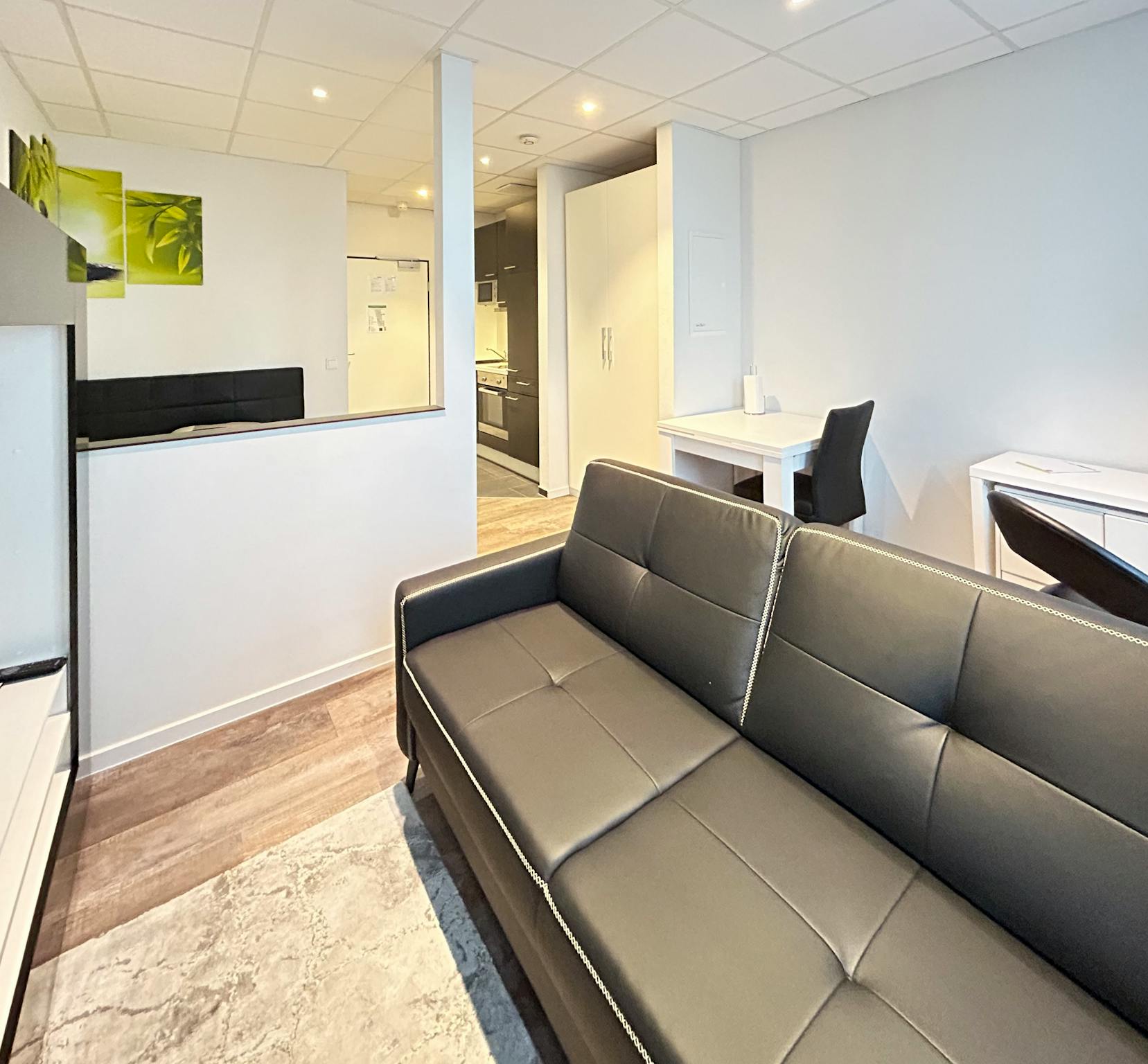 This modern and fully furnished apartment offers all the essentials for a hassle-free stay. It features a kitchenette with complete equipment, a bathroom with a shower, and a closet with a built-in safe. Internet and television are included, along with towels, bed linen, and thoughtful decorative touches. The monthly cleaning service ensures a comfortable and tidy living experience.