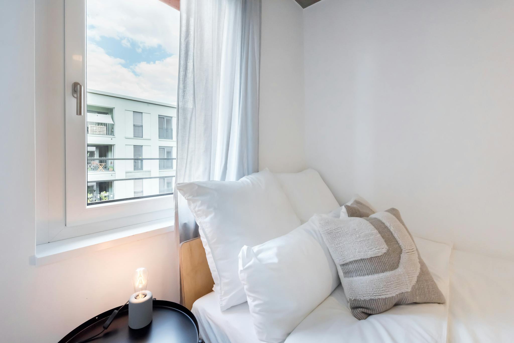 Our rooms come fully furnished with everything you need for a comfortable daily life, such as a bed with a premium mattress with bedsheets, pillows, and duvets, a large wardrobe, table, and chair for work with a lamp. Some rooms also have a private or shared balcony or terrace for you to enjoy the sunshine.
