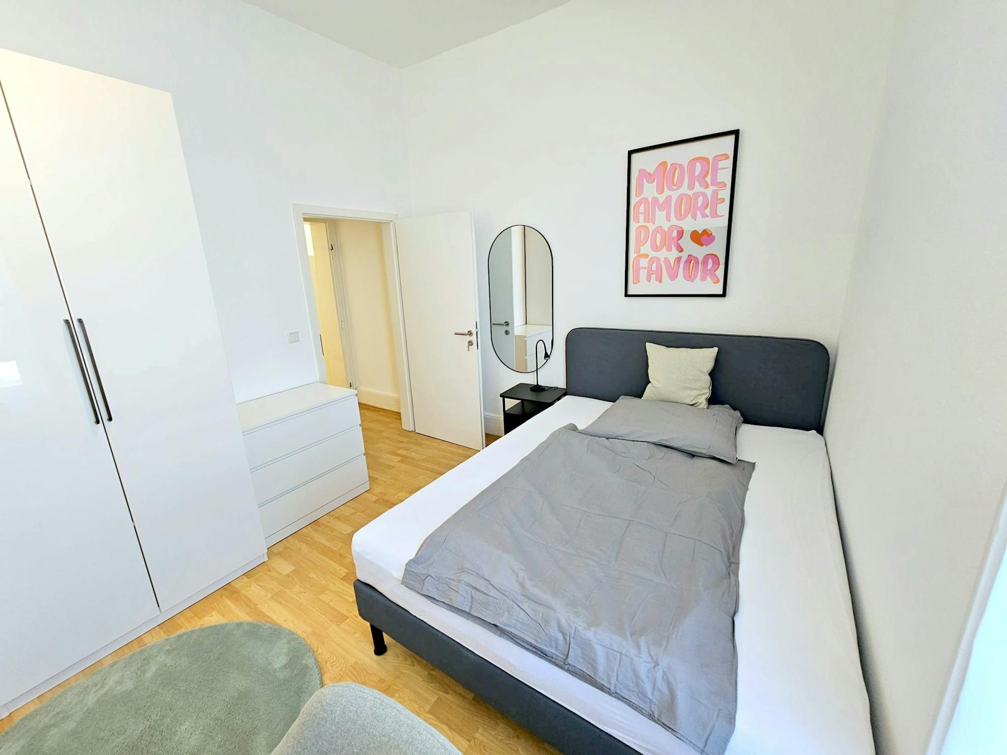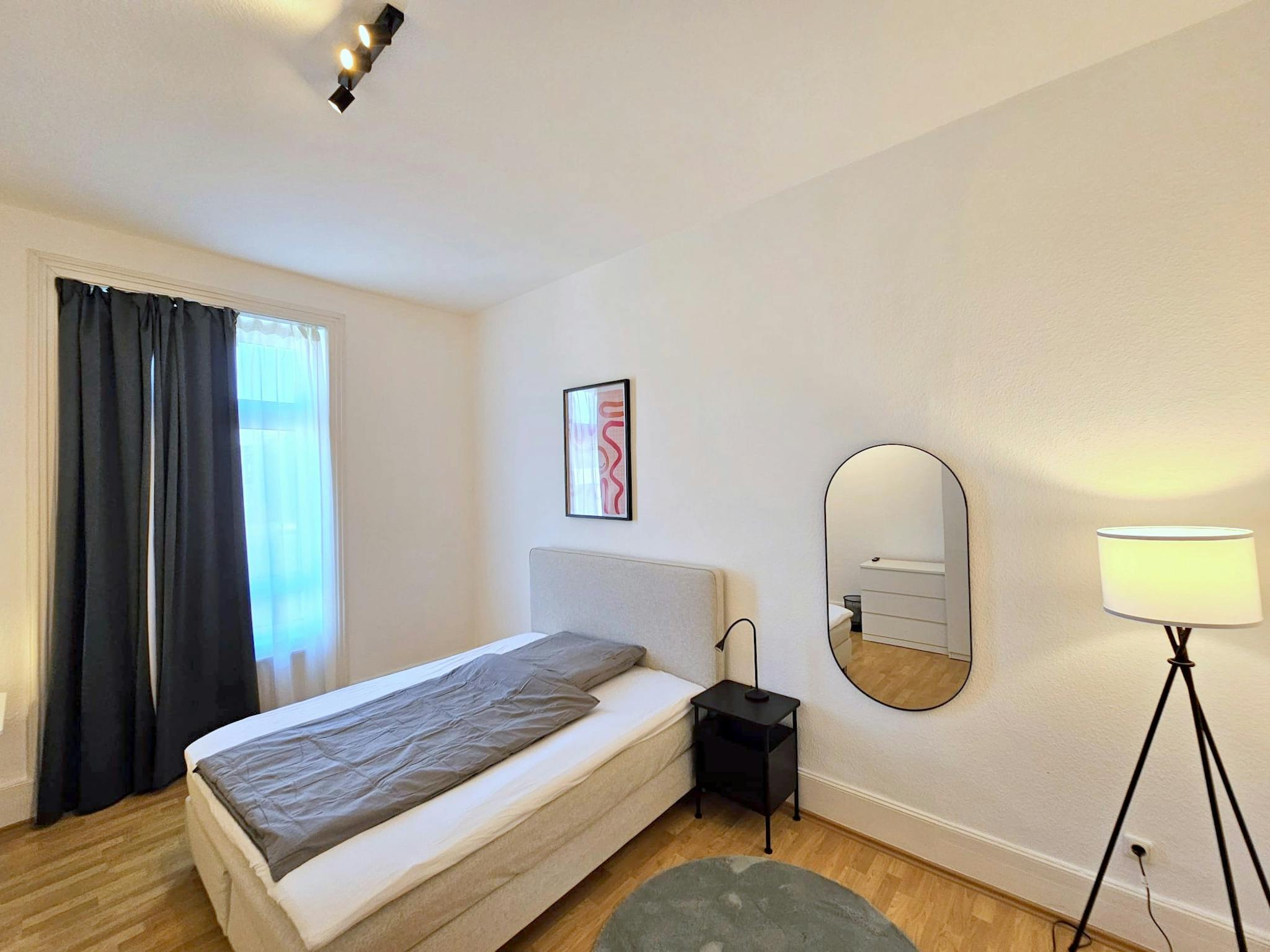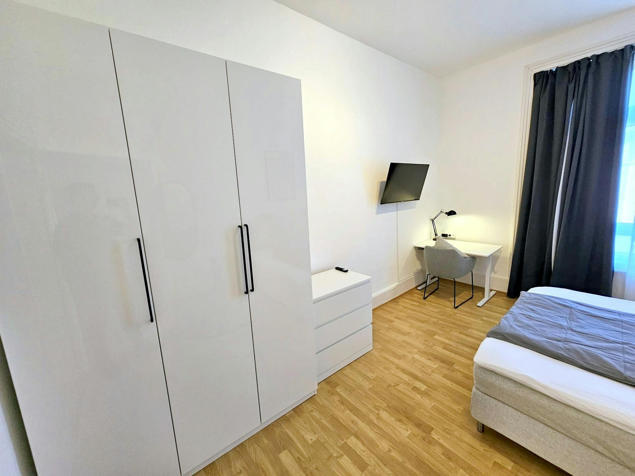 einer all inkl. Pauschalgebühr vergeben. Die vier Bewohner teilen sich die Nutzung von Küche und Bad. Die Wohnung wurde vollständig modernisiert und mit stilvollen, aufeinander abgestimmten Möbeln eingerichtet.
