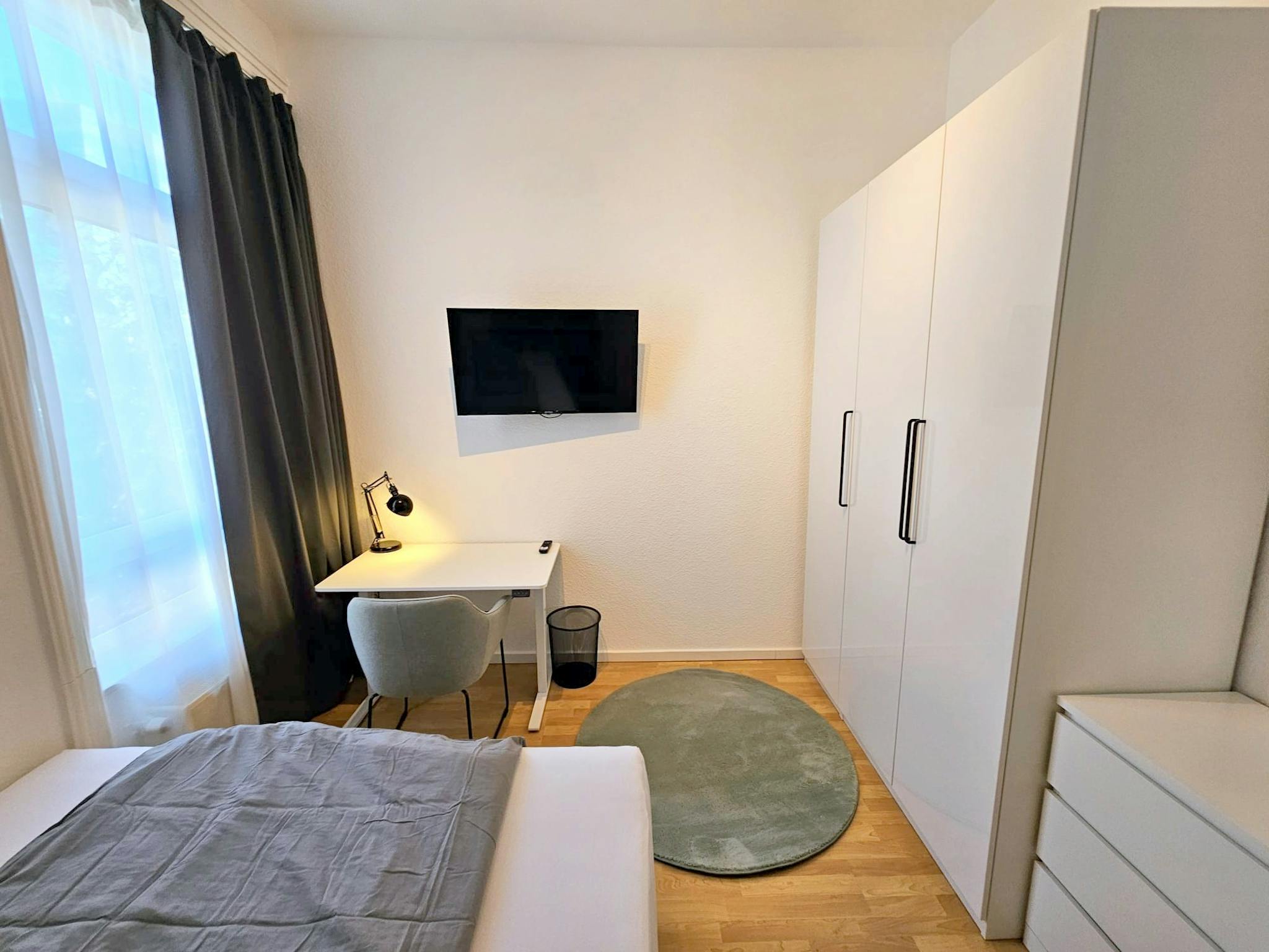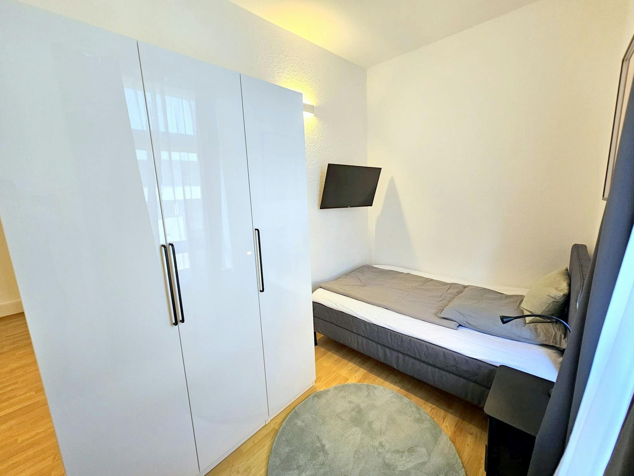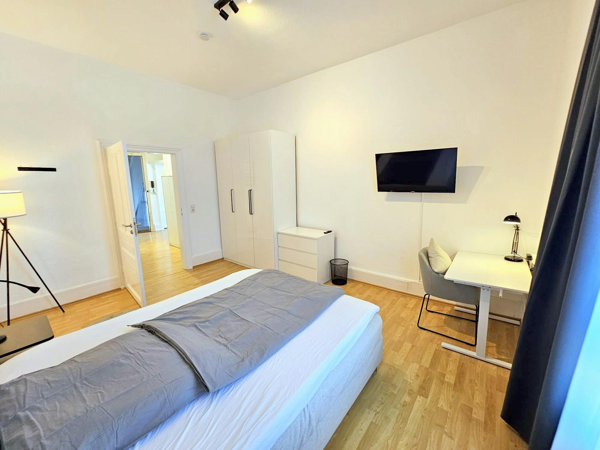 Schreibtisch mit Stuhl und Lampe – ideal fürs Arbeiten oder Lernen Teppichläufer, moderne Beleuchtung und Wanddeko Flachbildfernseher in jedem Zimmer Die Zimmer variieren leicht in Form und Stil, bieten aber alle ein gleichwertiges Niveau an Komfort. Helle Wände und Parkettböden verleihen den Räumen eine warme und einladende Atmosphäre.