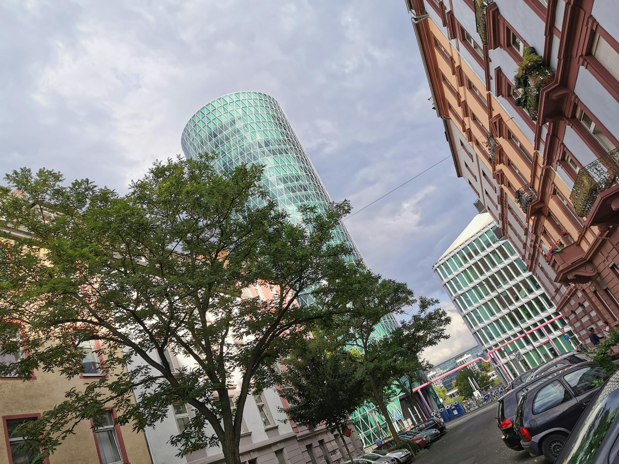 Soll heißen in verkehrsberuhigter Zone, sehr nah an allen öffentlichen Verkehrsmitteln, nah am Hauptbahnhof und noch näher am Wasser — sprich, am Ufer des Main.