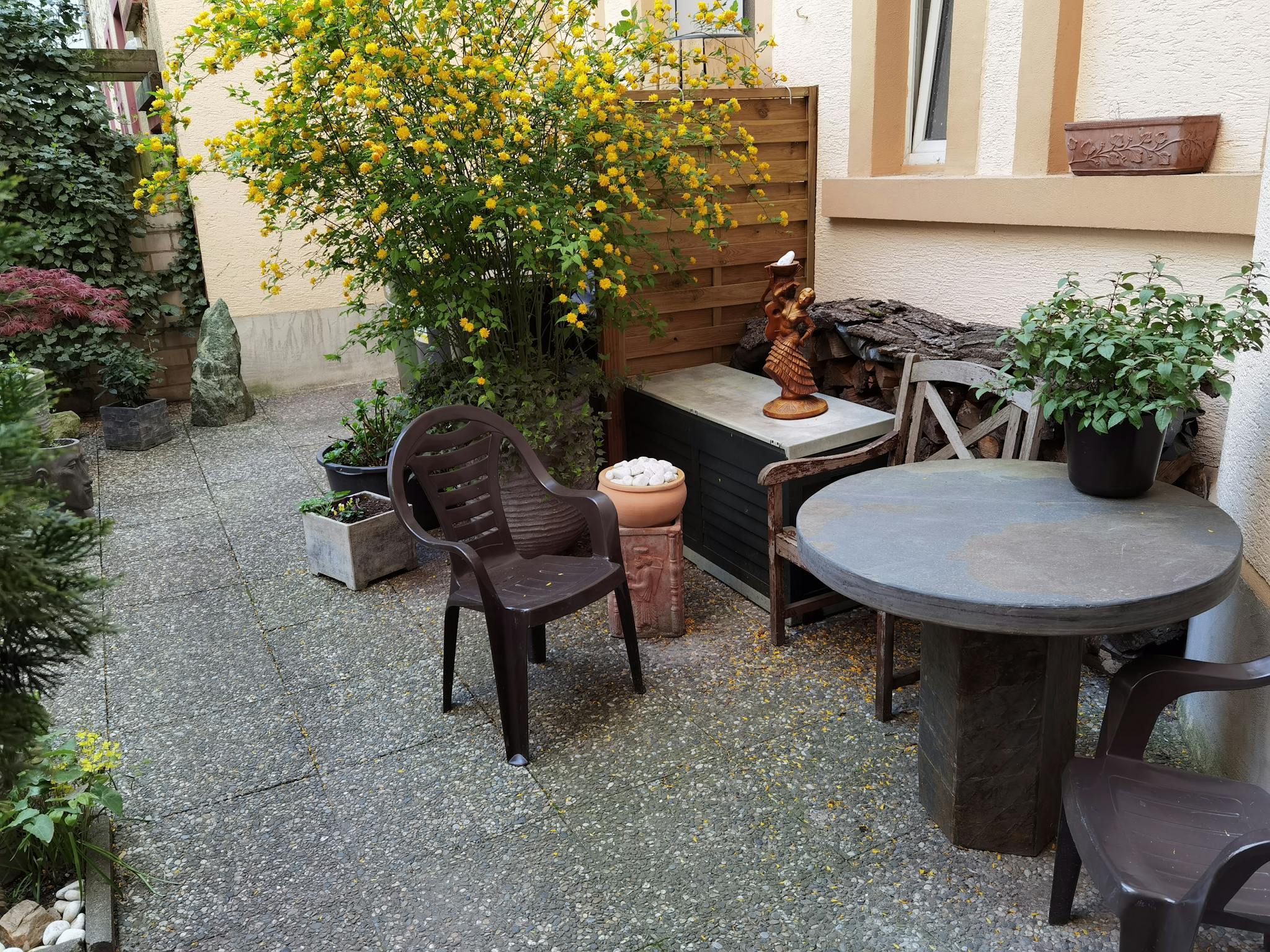 ▪︎ Mitnutzung von Tisch und Stühlen im Innenhof (in meiner kleinen Chill-Zone ;) — problemlos nach Vereinbarung, nicht aber des privaten Gartens.