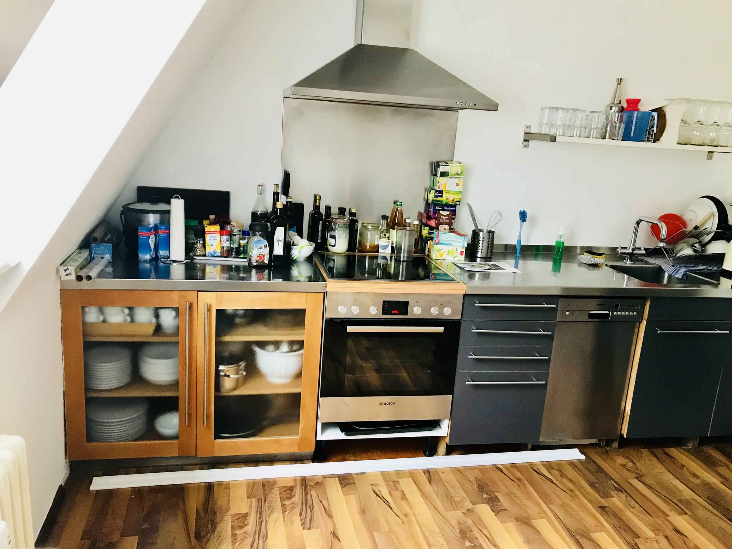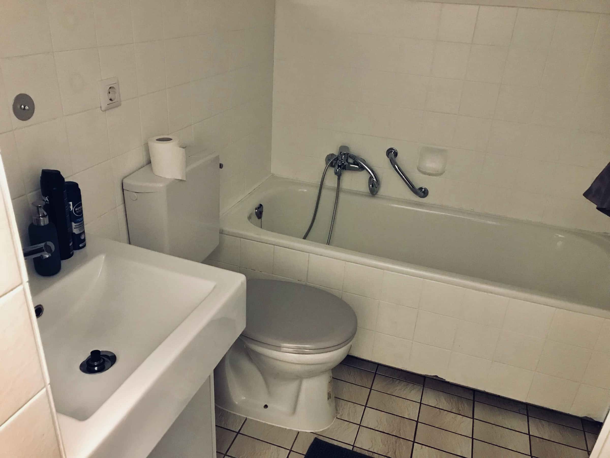 Live just a few steps away from Main river in the heart of Frankfurt. The quarter is lined with many shops, bars and restaurants. The new building convinces with a huge common area to chill, eat and get together. The apartment are also has two bathrooms.
