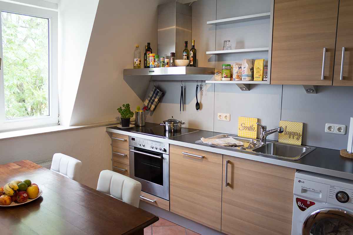 Our flats fulfil all your daily living requirements. Every flat comes readily equipped with a kitchen, including refrigerator, cooking equipment and dishes. Flats also include a washing machine and Wi-Fi Internet. Each room is fully furnished and offers a comfortable bed with fresh linen and a workspace. The area provides you with several shopping opportunities and excellent connections to public transport.