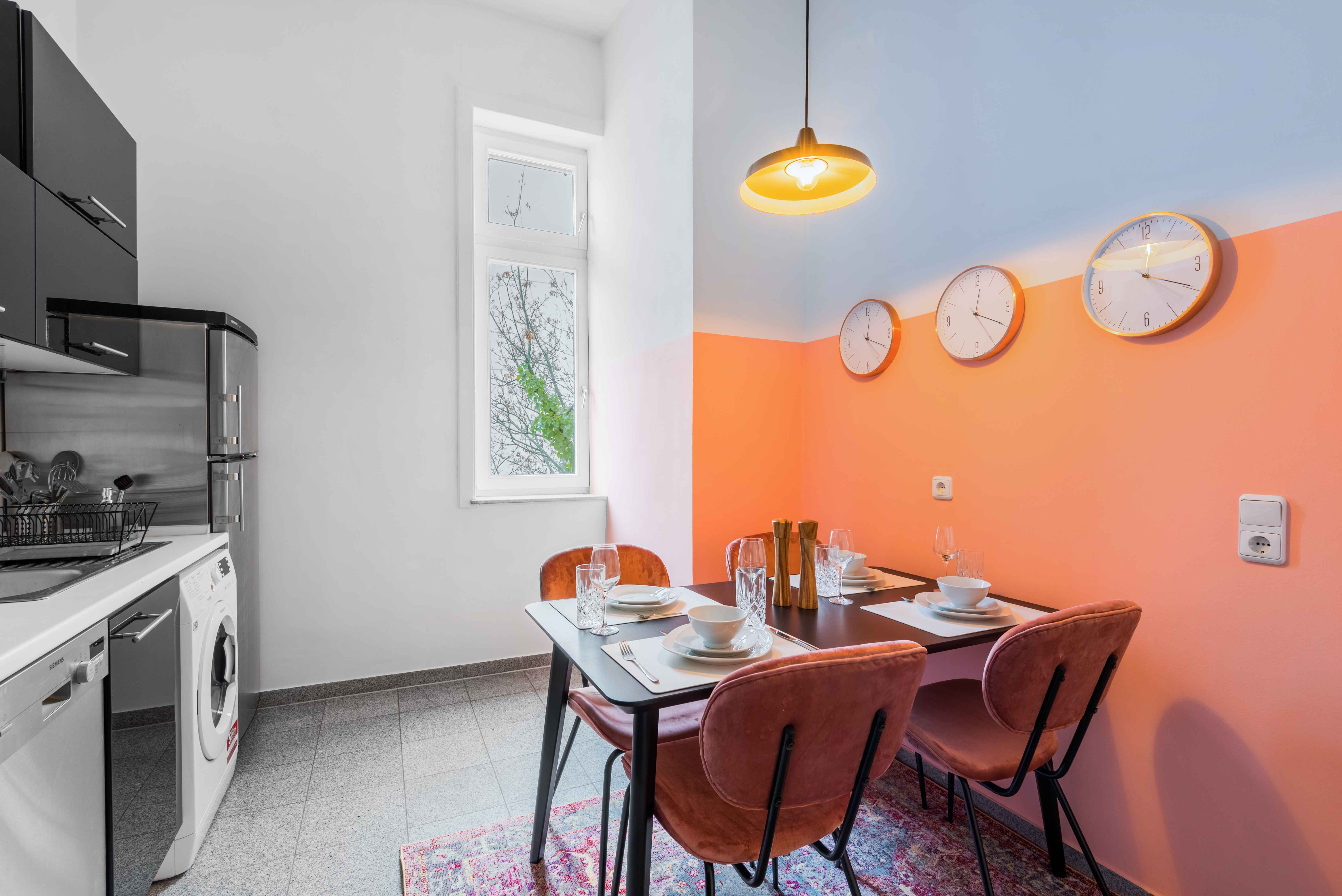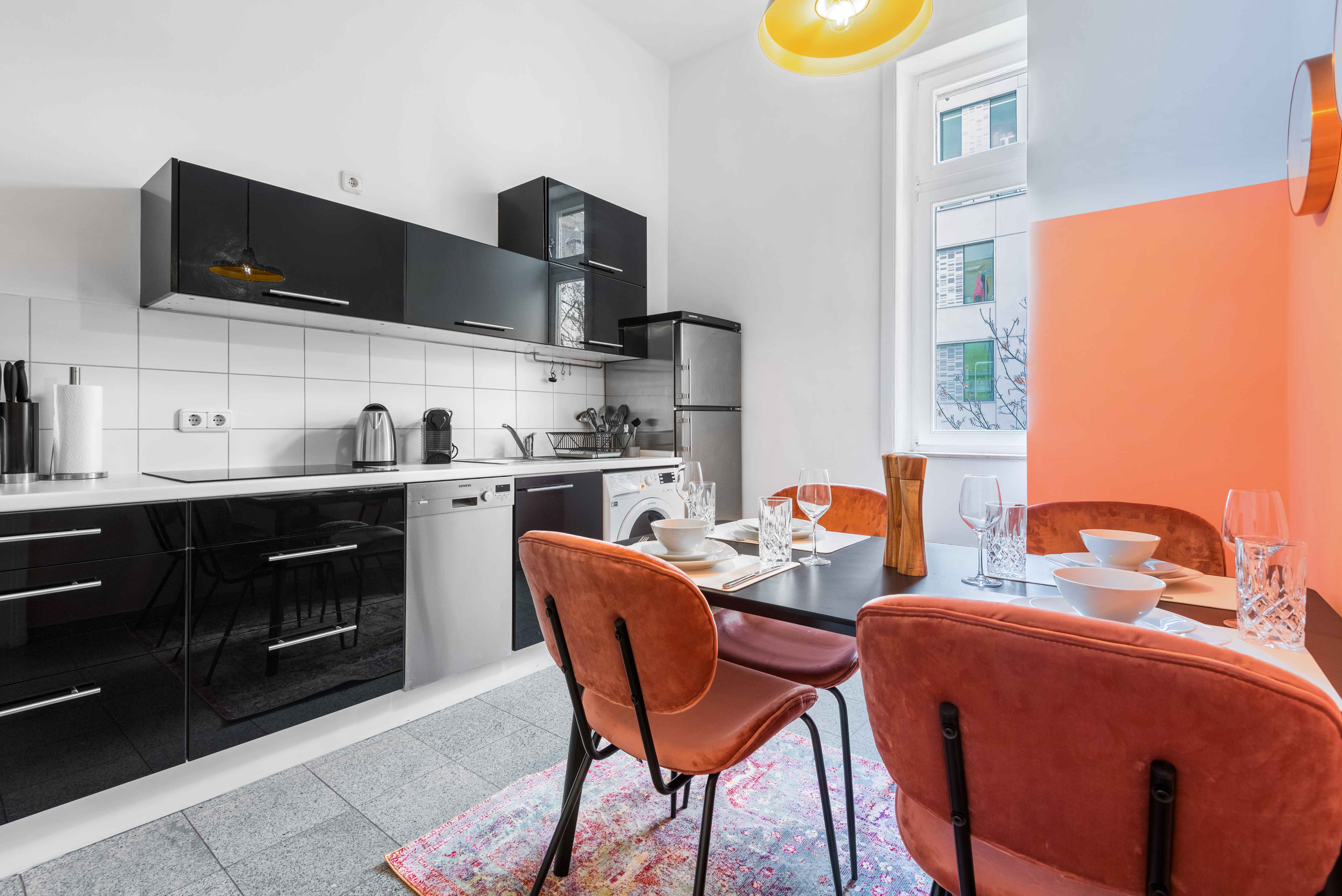 Our flats fulfil all your daily living requirements. Every flat comes readily equipped with a kitchen, including refrigerator, cooking equipment and dishes. Flats also include a washing machine and Wi-Fi Internet. Each room is fully furnished and offers a comfortable bed with fresh linen and a workspace. The area provides you with several shopping opportunities and excellent connections to public transport.