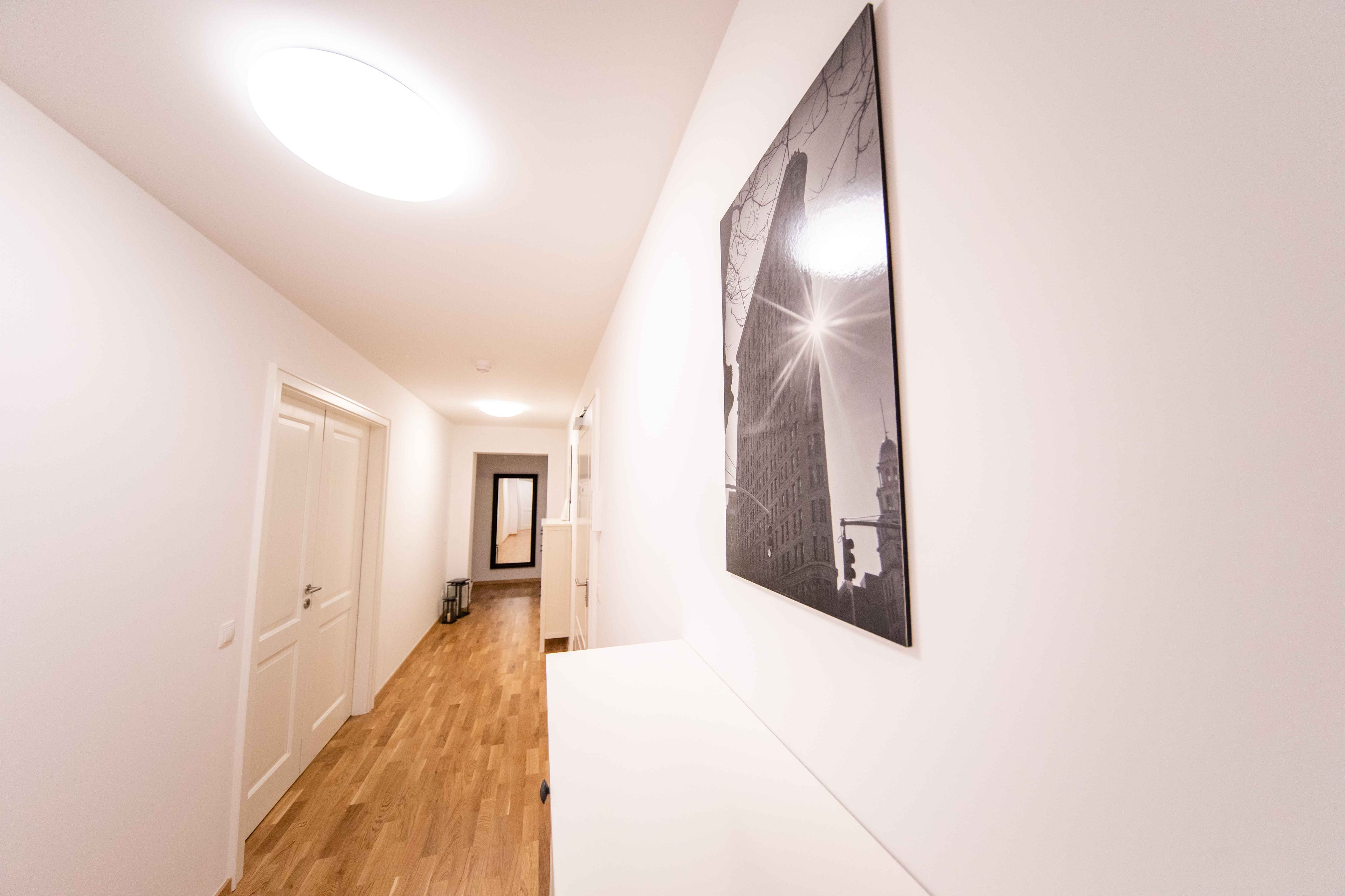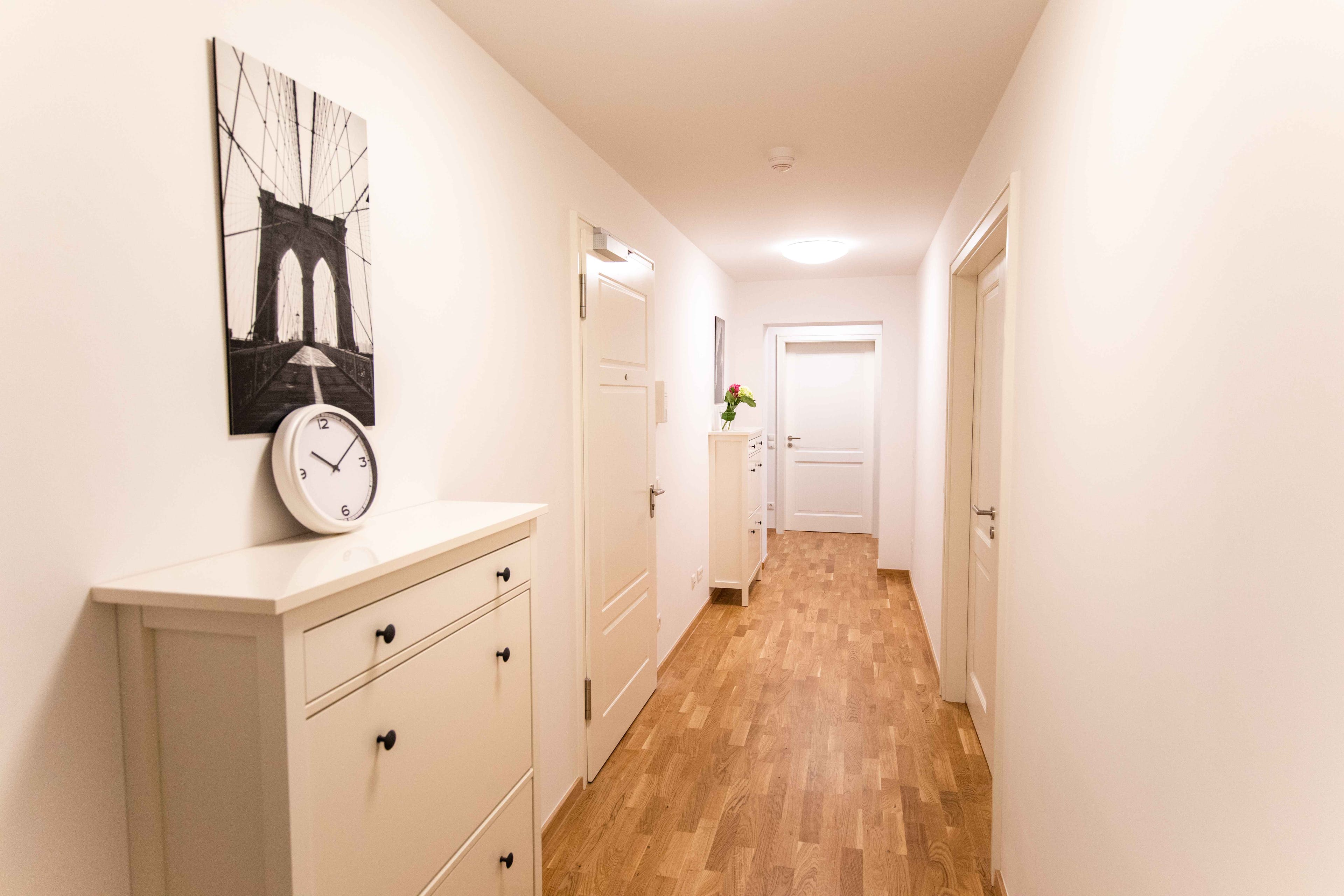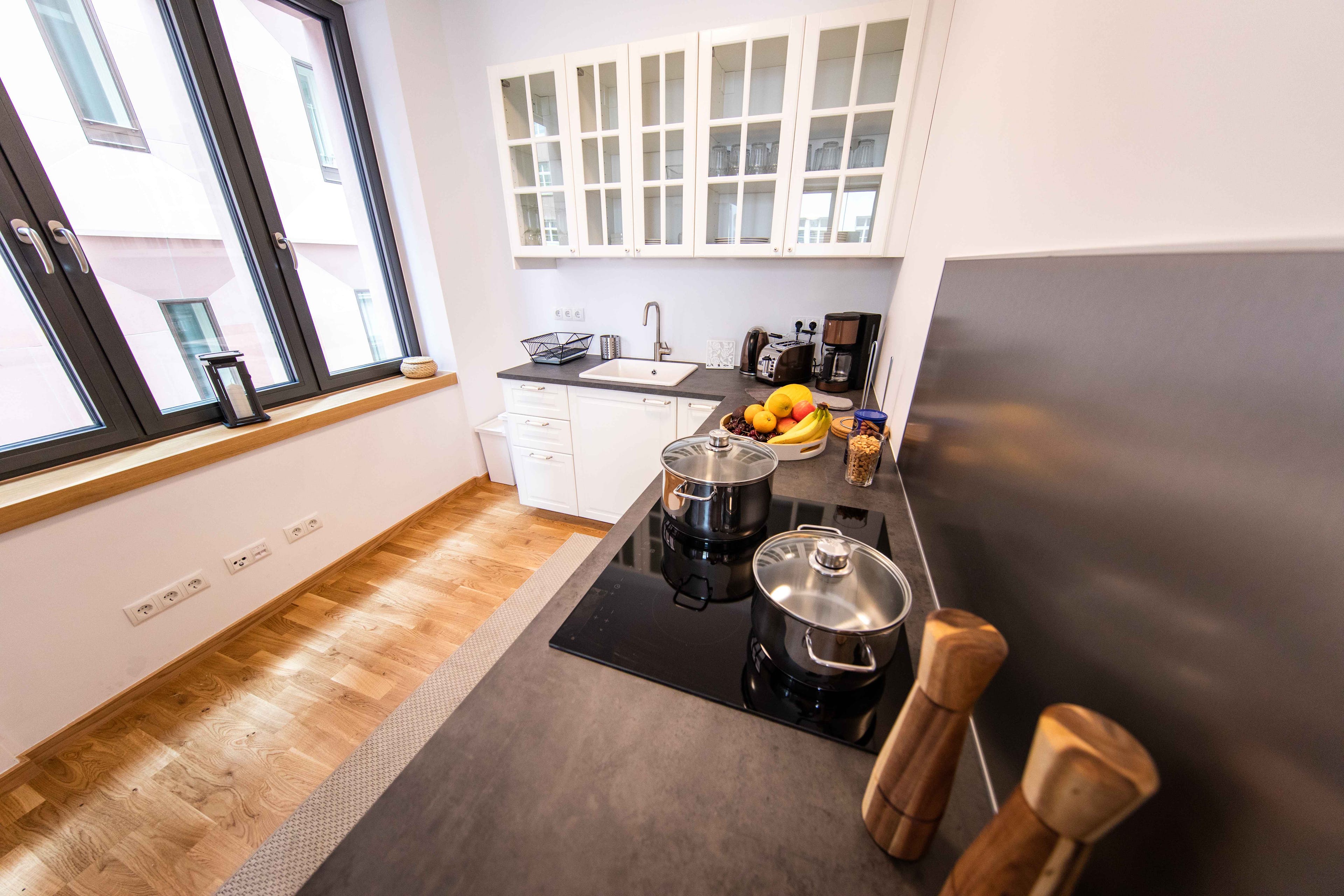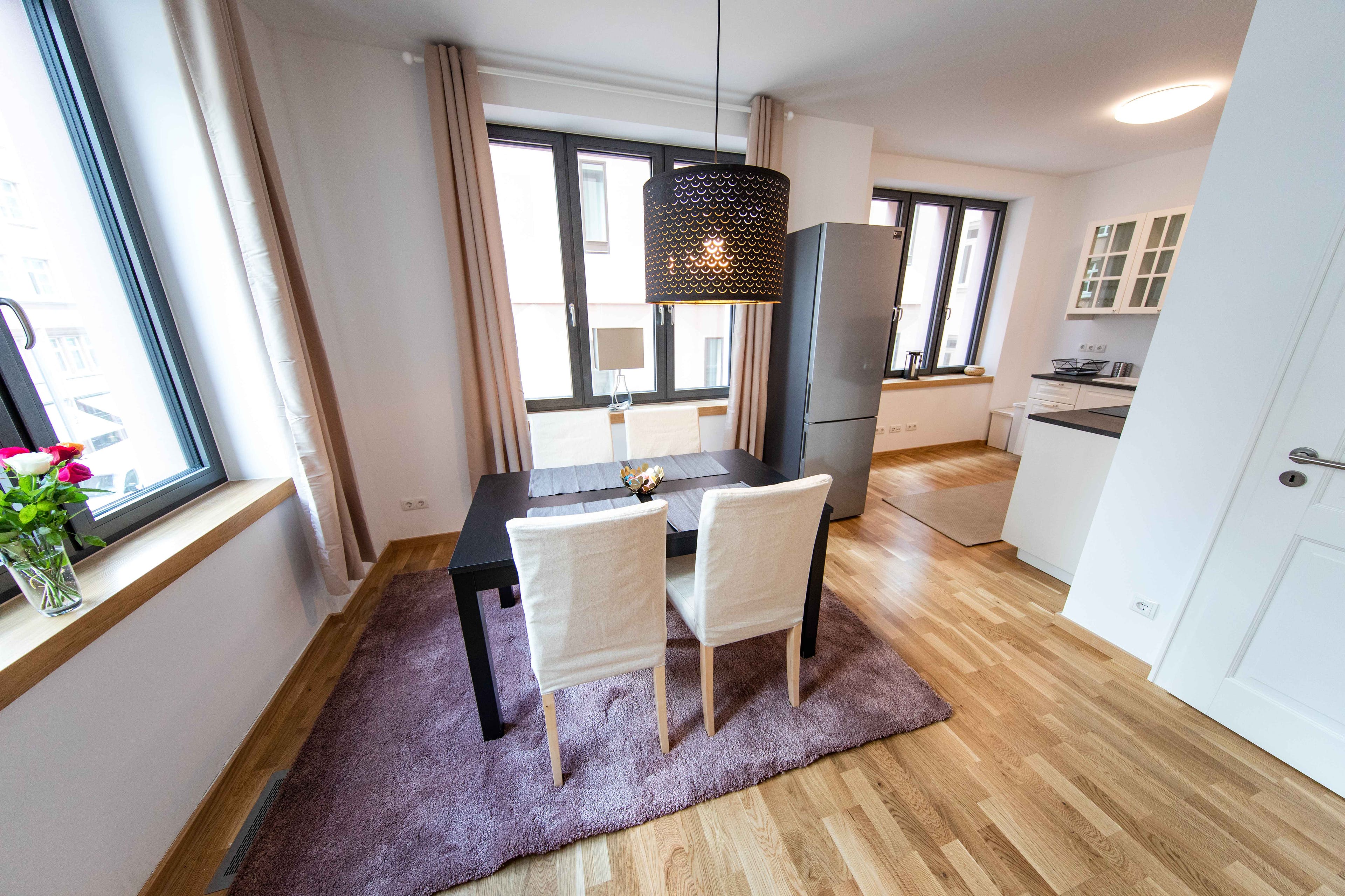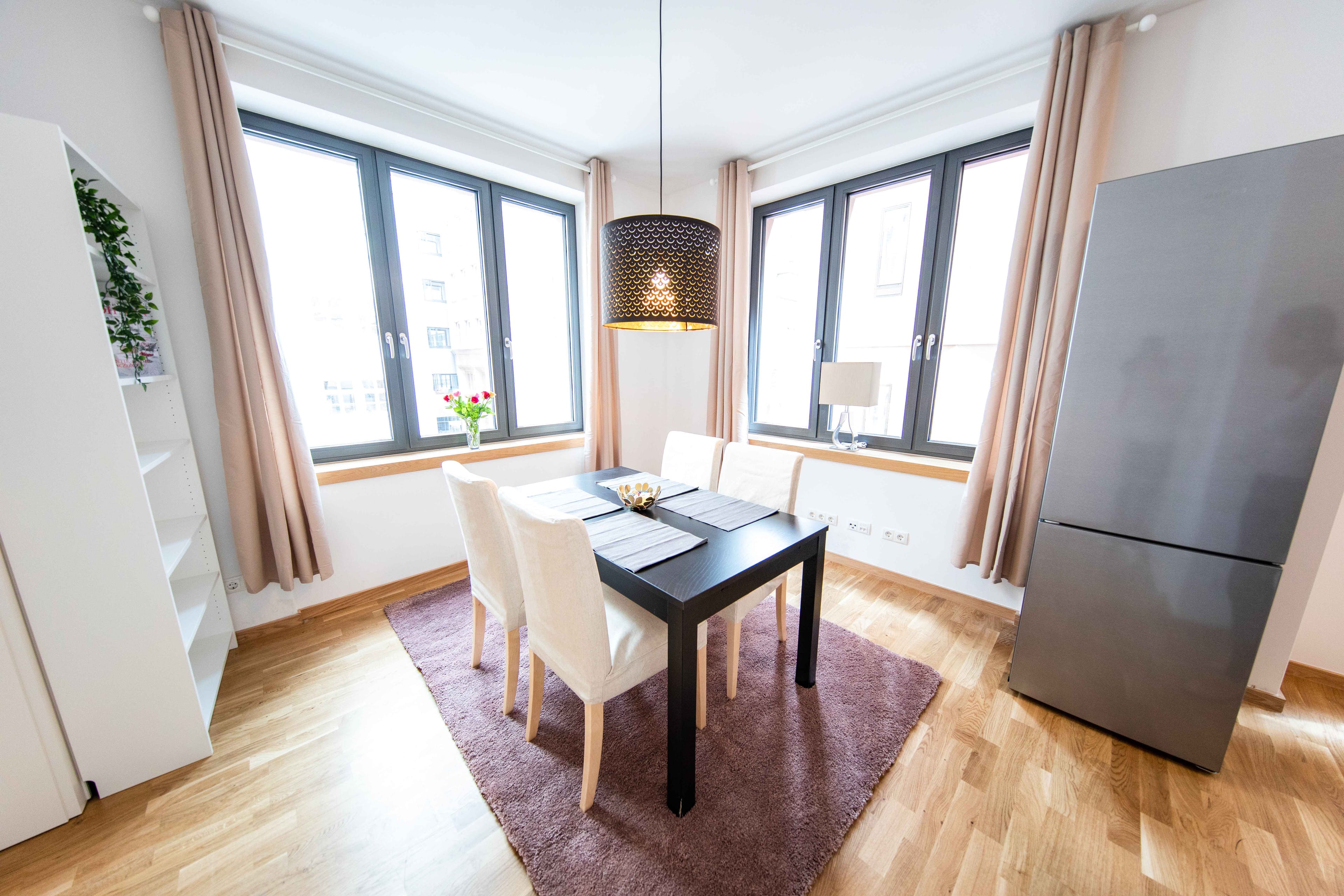Our flats fulfil all your daily living requirements. Every flat comes readily equipped with a kitchen, including refrigerator, cooking equipment and dishes. Flats also include a washing machine and Wi-Fi Internet. Each room is fully furnished and offers a comfortable bed with fresh linen and a workspace. The area provides you with several shopping opportunities and excellent connections to public transport.