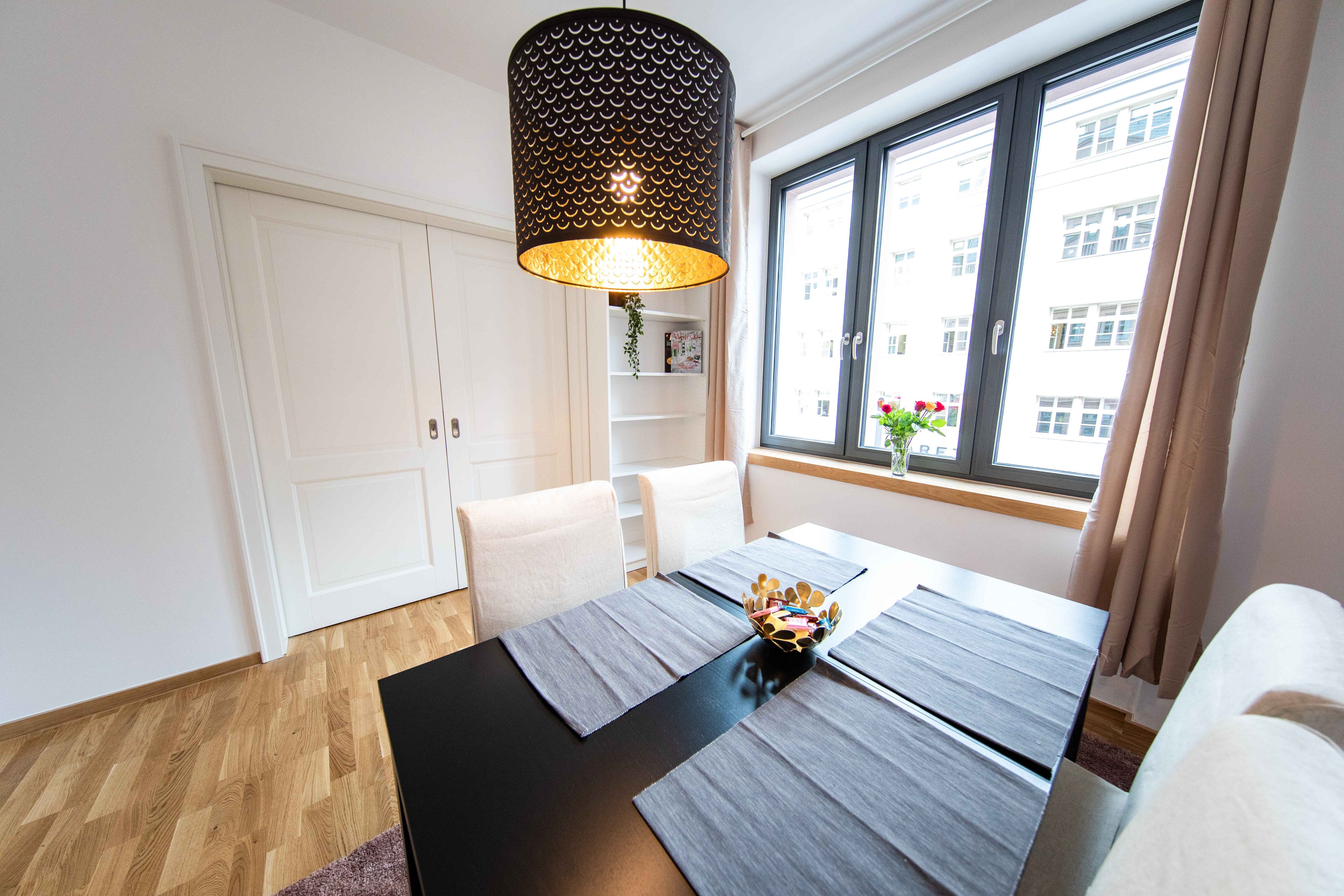 Located in the middle of the Art and Culture Quarter, with many museums and cultural sights, like the Imperial Cathedral of Saint Bartholomew and plenty of opportunities to go out. This apartment offers a high-quality atmosphere with two designer bathrooms and a spacious common area next to the kitchen.