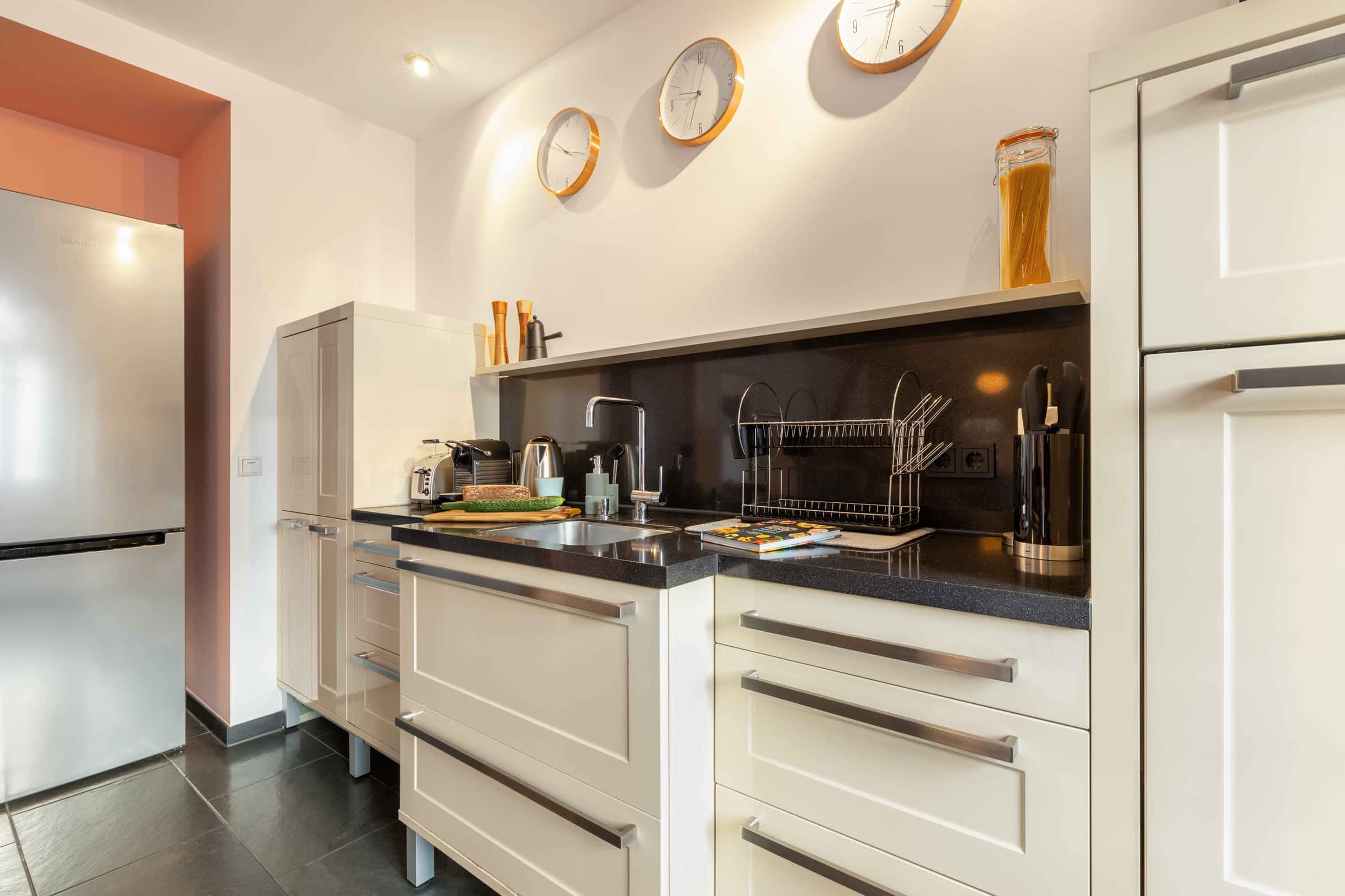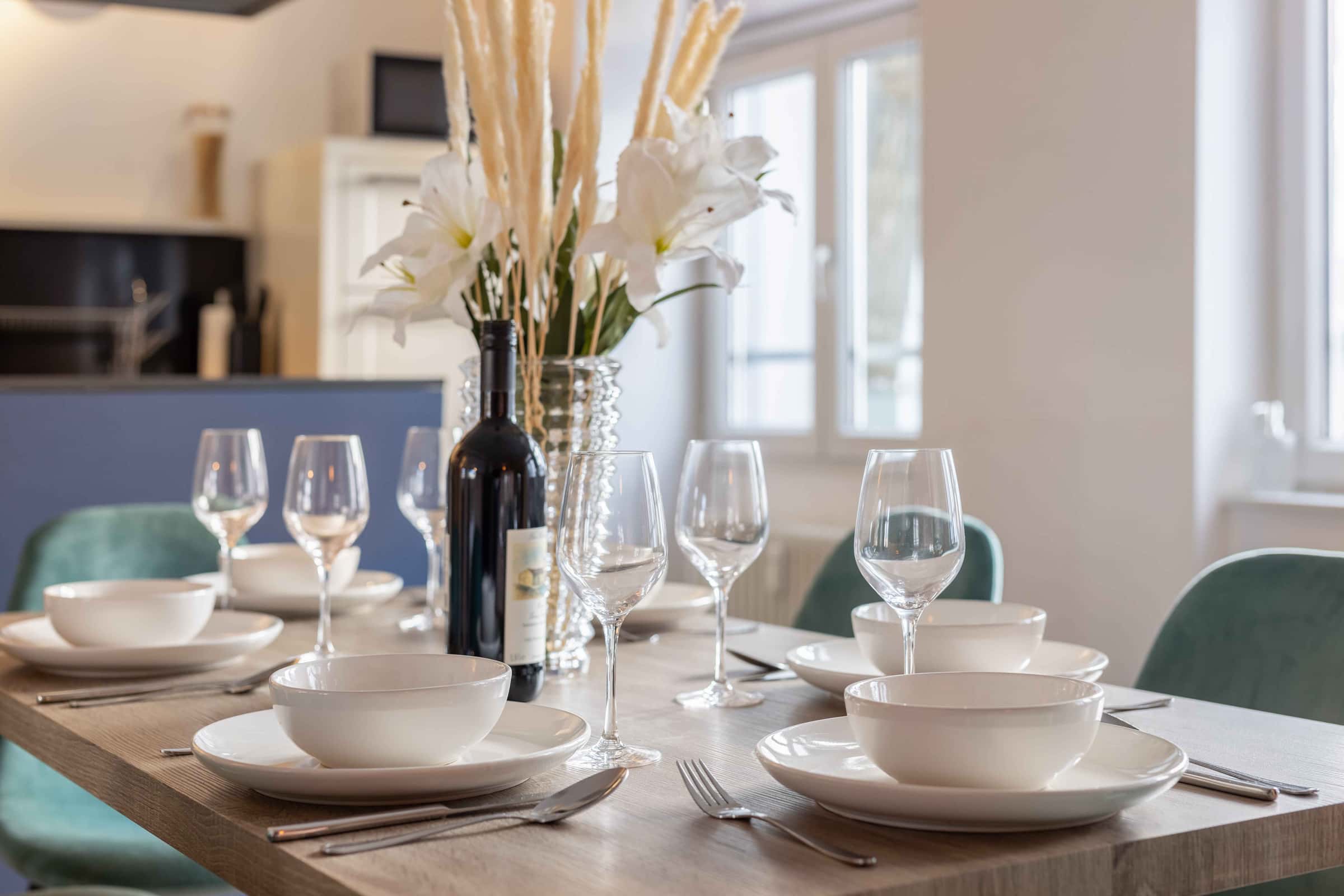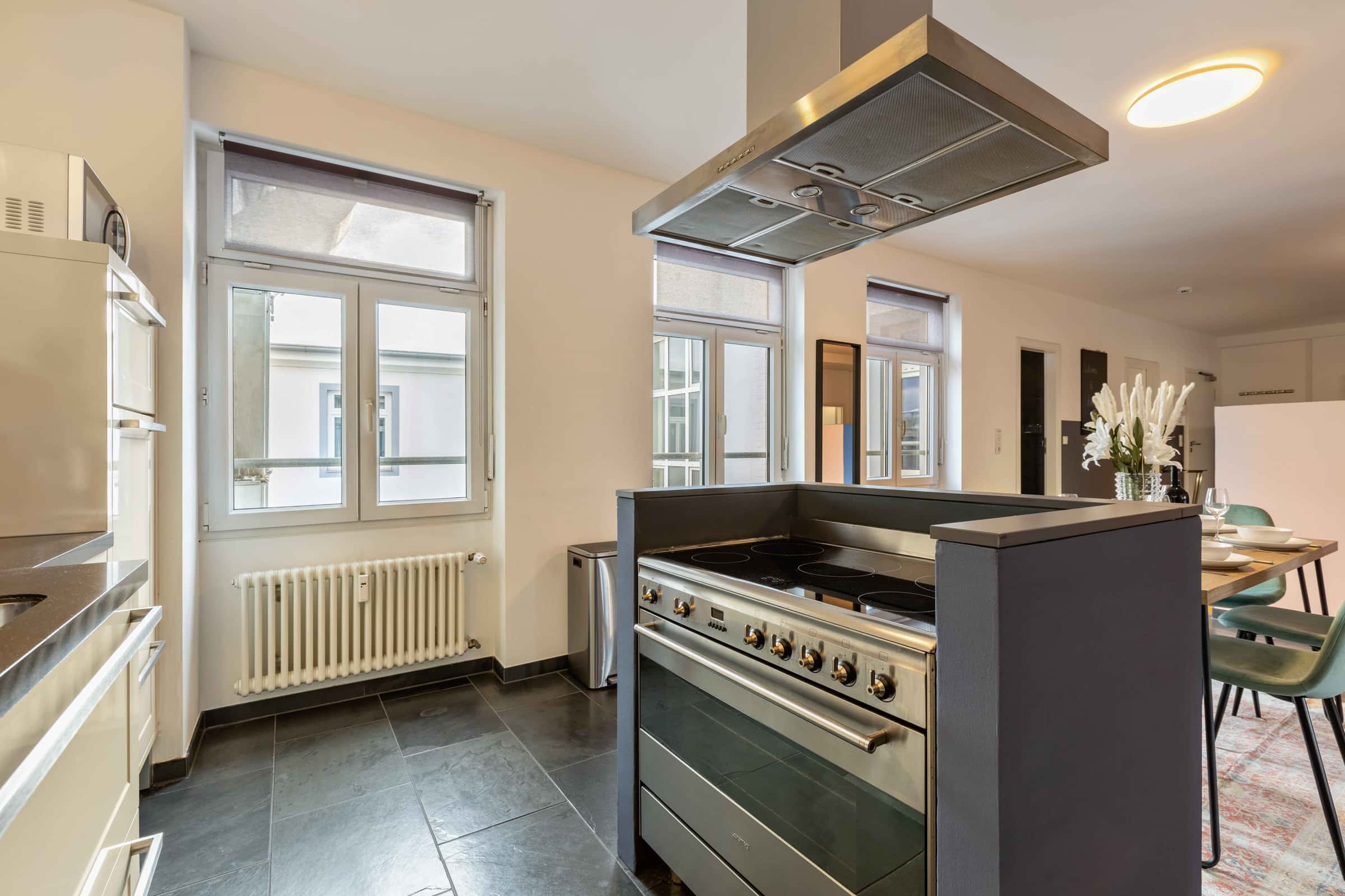 Our flats fulfil all your daily living requirements. Every flat comes readily equipped with a kitchen, including refrigerator, cooking equipment and dishes. Flats also include a washing machine and Wi-Fi Internet. Each room is fully furnished and offers a comfortable bed with fresh linen and a workspace. The area provides you with several shopping opportunities and excellent connections to public transport.