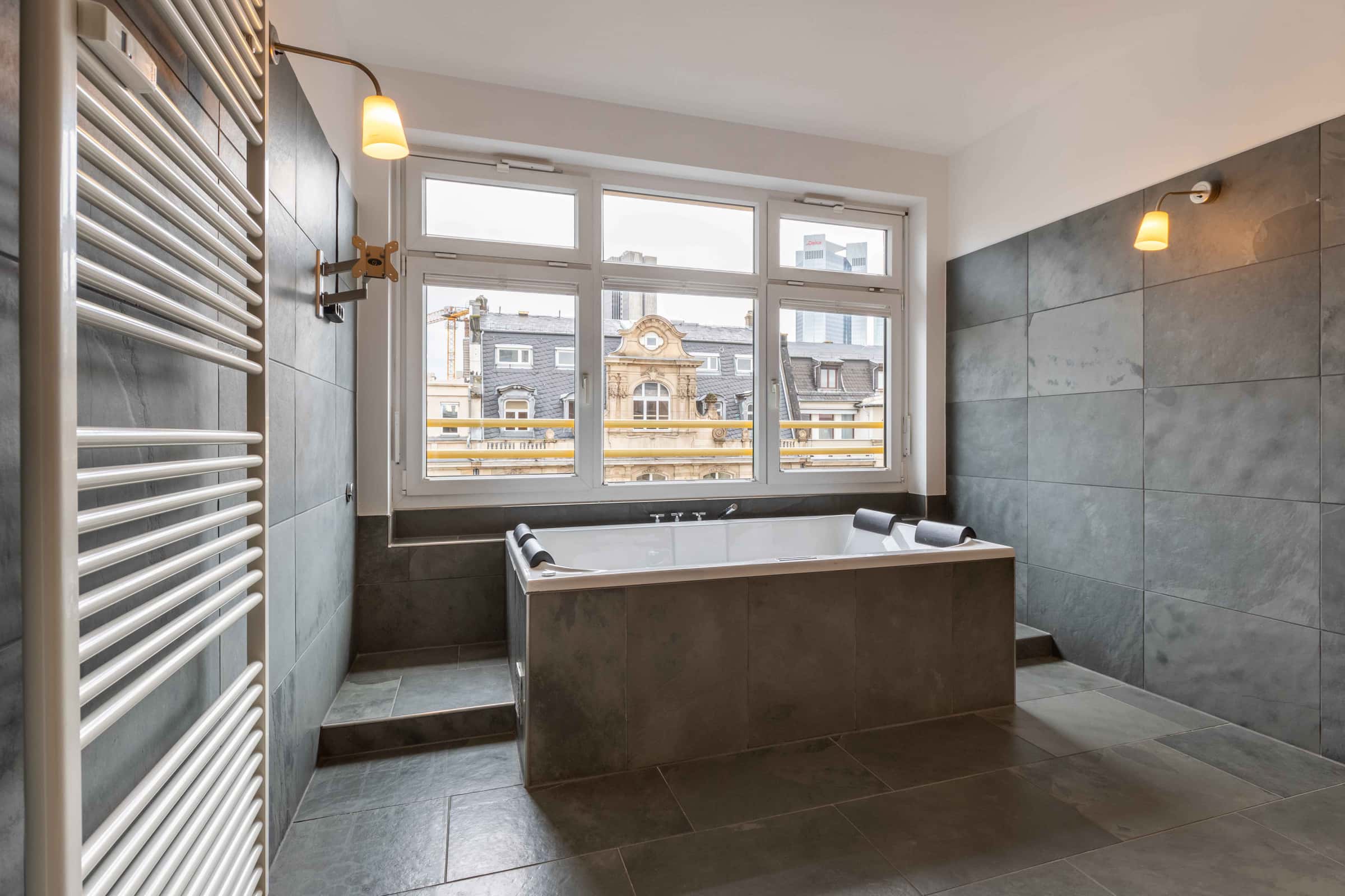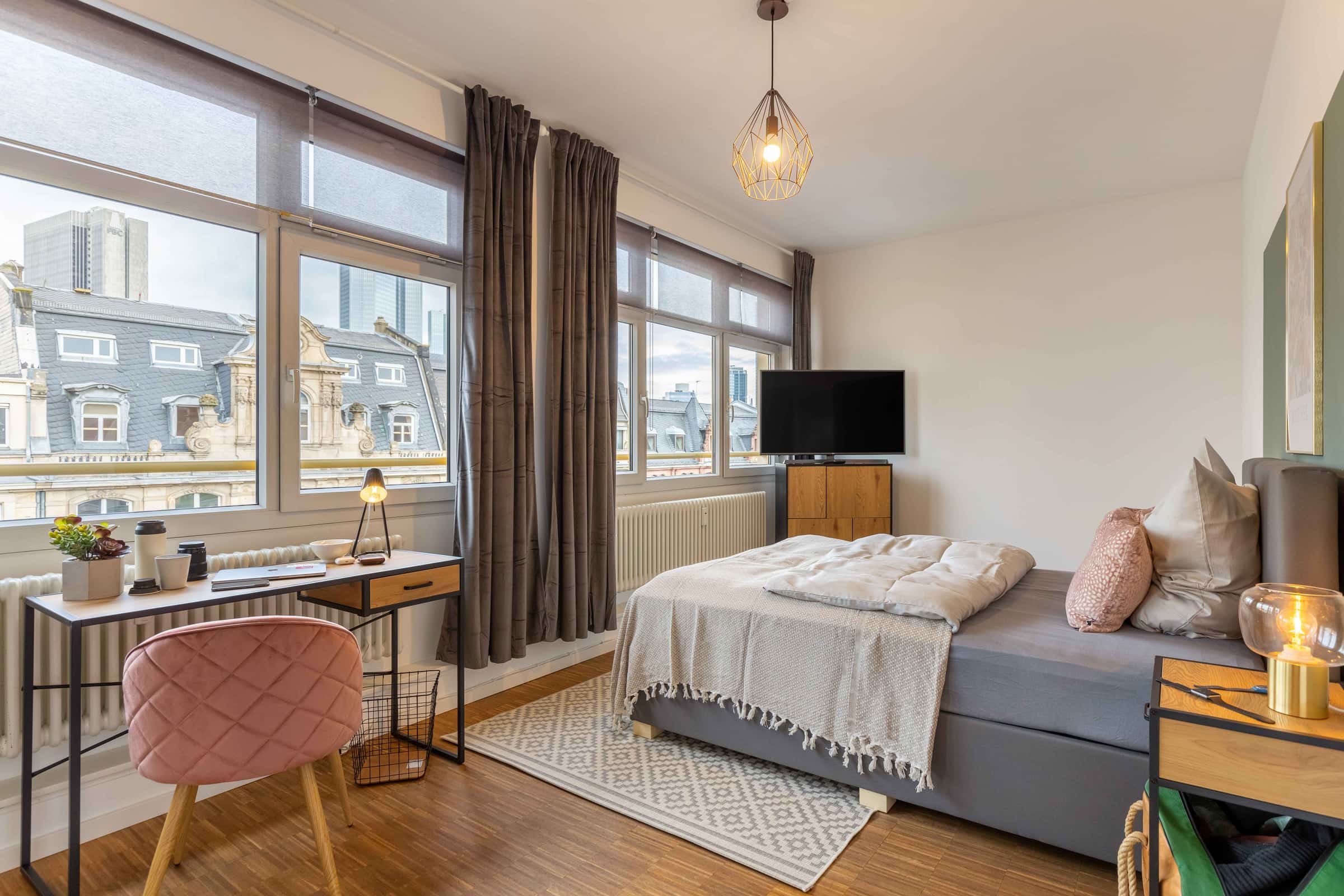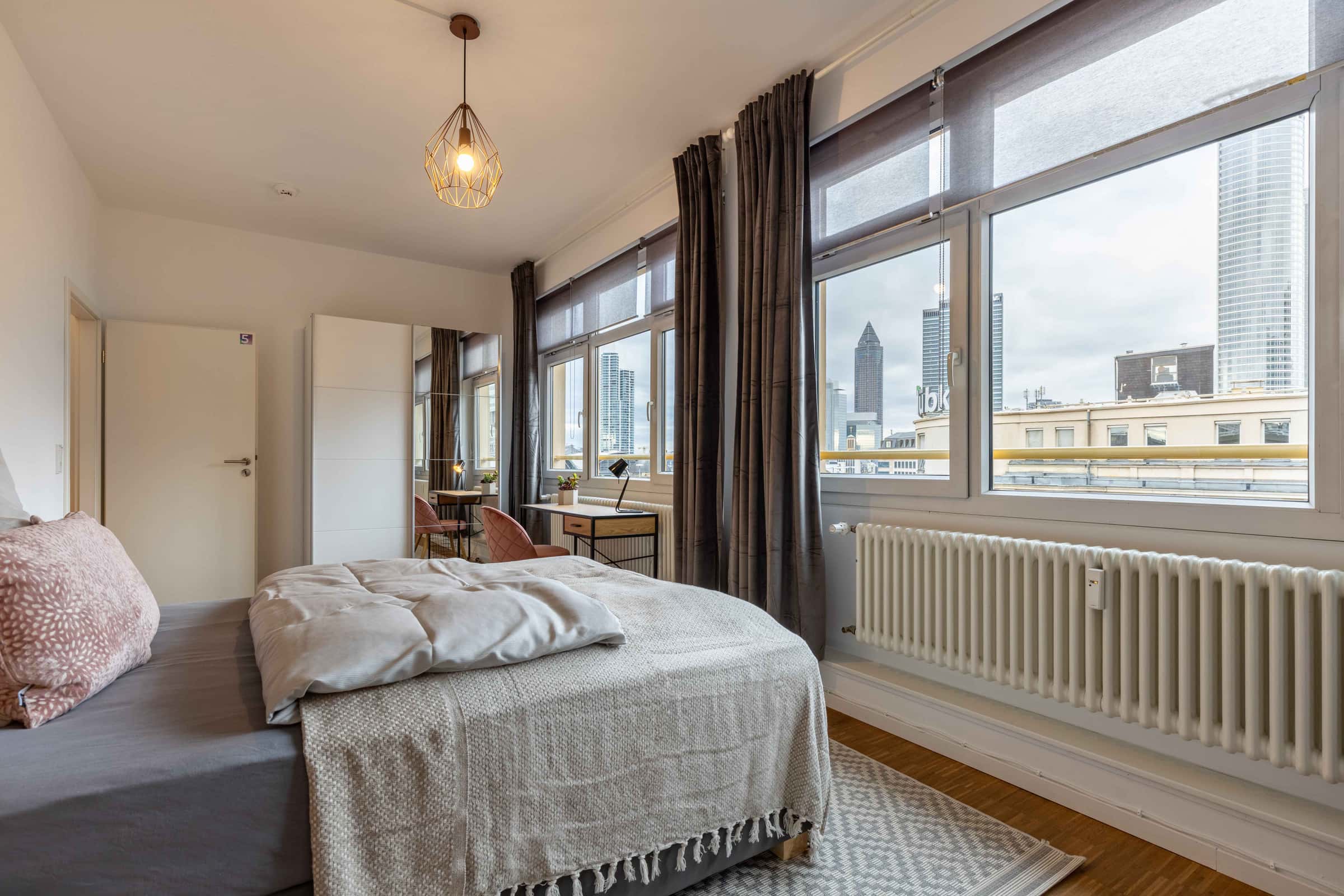 This location convinces with its centrality to all possible activities. Apart from the river Main and Frankfurt’s skyline, where you can take beautiful walks at the promenade, the central station is close by. The flat is bright and modern. Moreover, a prominent community space is a big advantage.