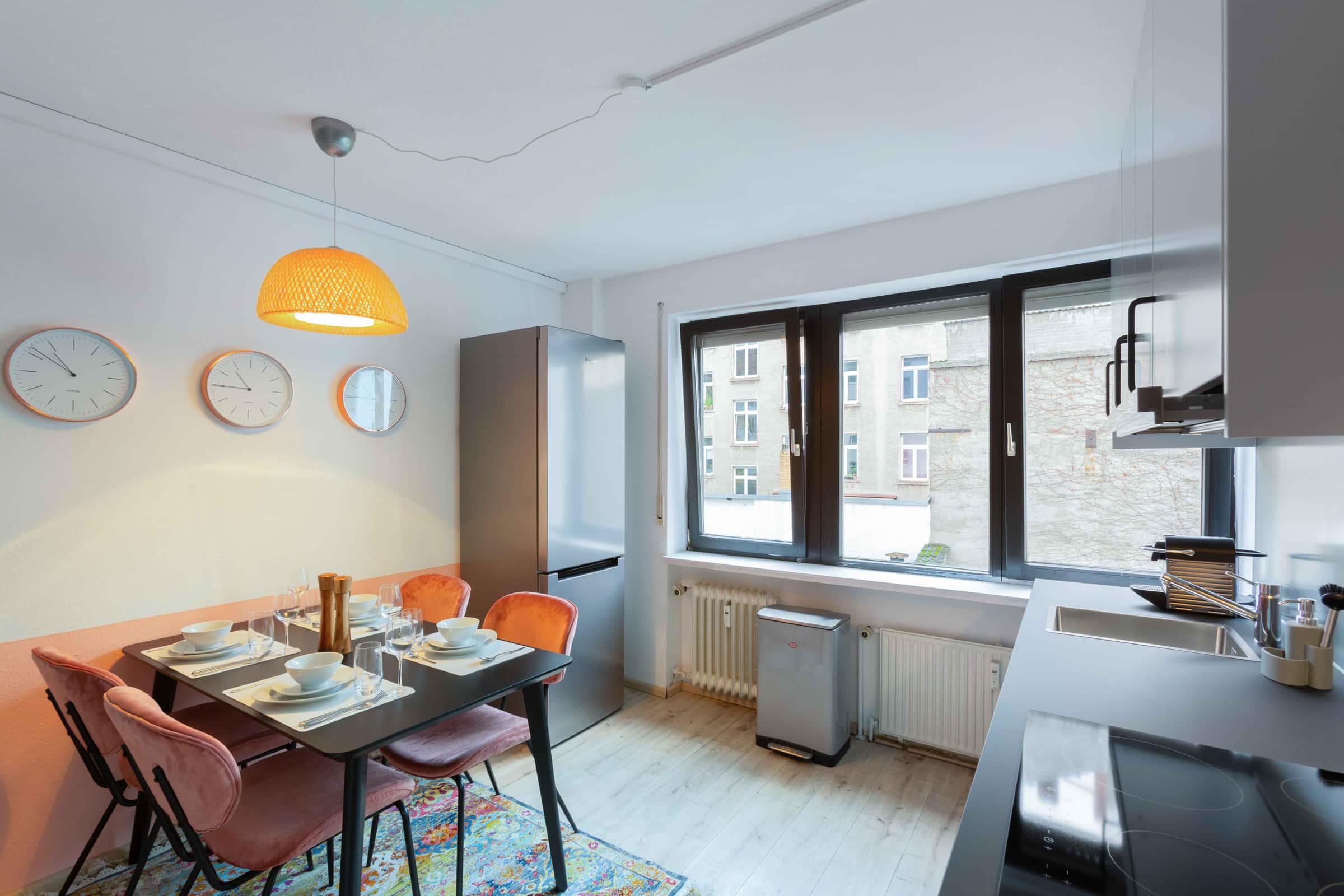 Live in a very popular quarter of Frankfurt, with a mix of students and old-established. Next to the apartment, there is a big park that invites to beautiful walks. The renovated old-building convinces with an eat-in kitchen to eat and get together.