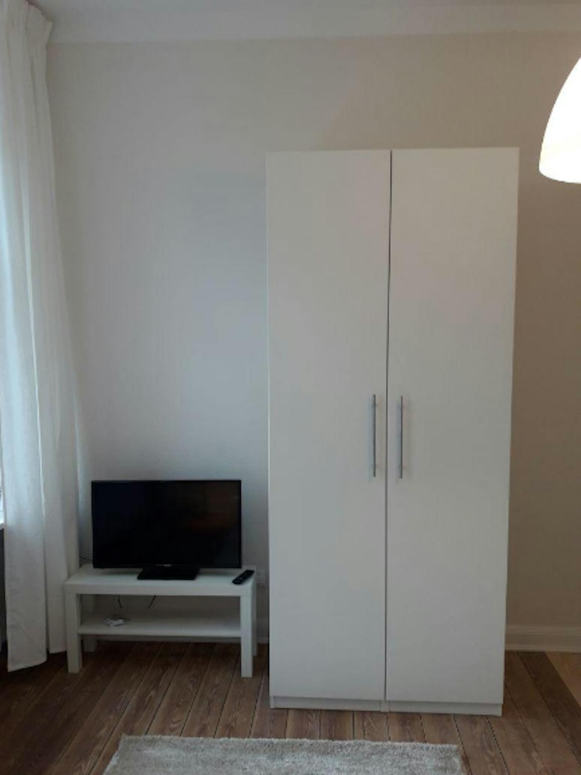 Das umfangreich renovierte Studio ist voll möbliert und befindet sich im Hochparterre eines sanierten Altbaus. neue qualitäts Einbauküche mit 2 Platten Cerankochfeld Backofen Dunstabzugshaube Kühlschrank Gefrierfach Spüle Bad mit Dusche, Waschbecken und WC. Das Zimmer, 1 Bett, 90 cm x 200 cm 1 Kleiderschrank mit 8 Bügeln 1 Schreibtisch mit Schreibtischstuhl 1 Regal 1 Fernsehtisch 1 TV Eine Bettdecke, ein Kissen, Spannbettlaken und Bettwäsche werden zur Verfügung gestellt. Bügelbrett, Wäscheständer und Bügeleisen sind ebenfalls vorhanden. WLAN ist im Mietpreis inbegriffen. Eventuell kann eine höhere Internetgeschwindigkeit gewählt werden.