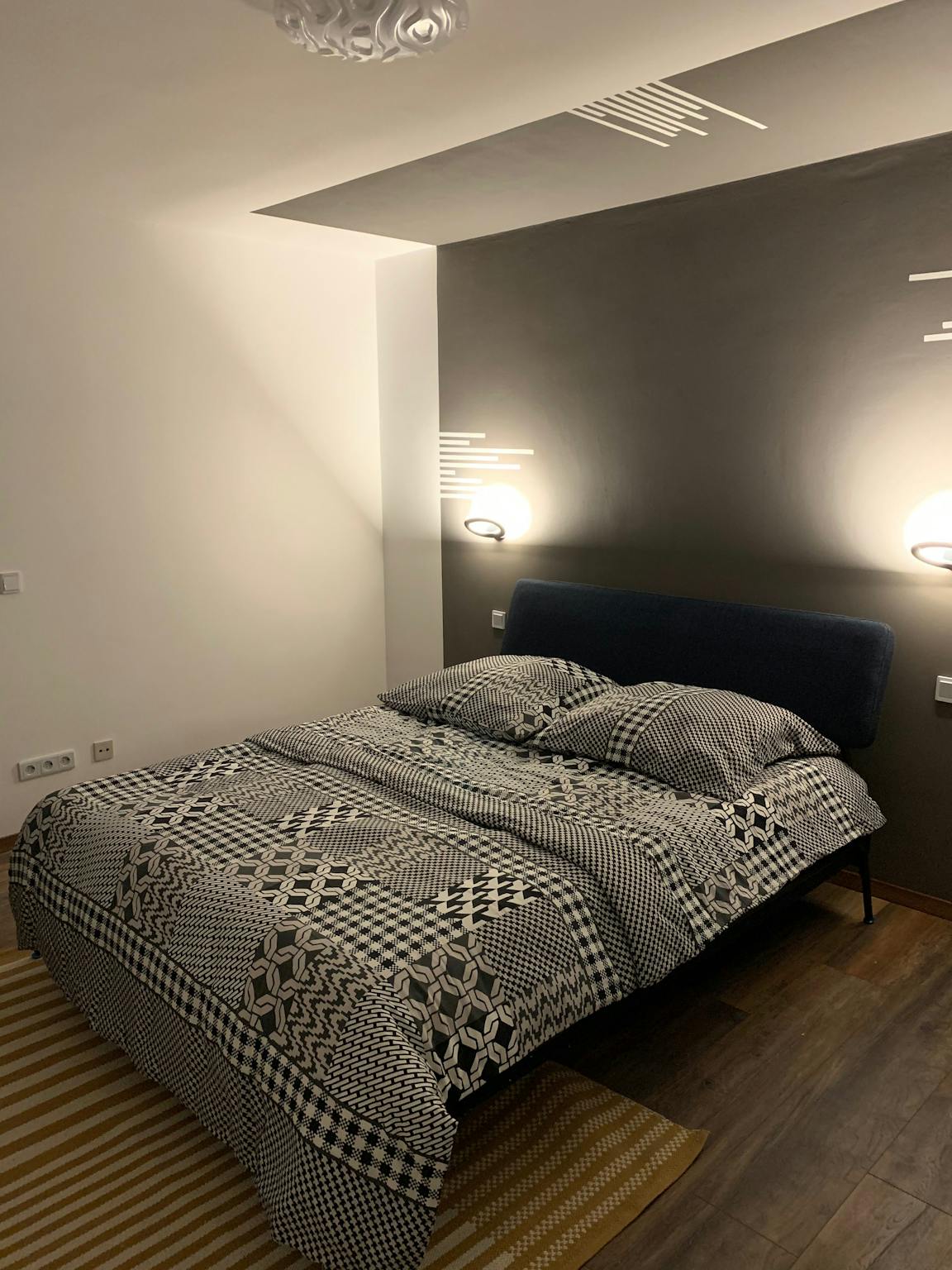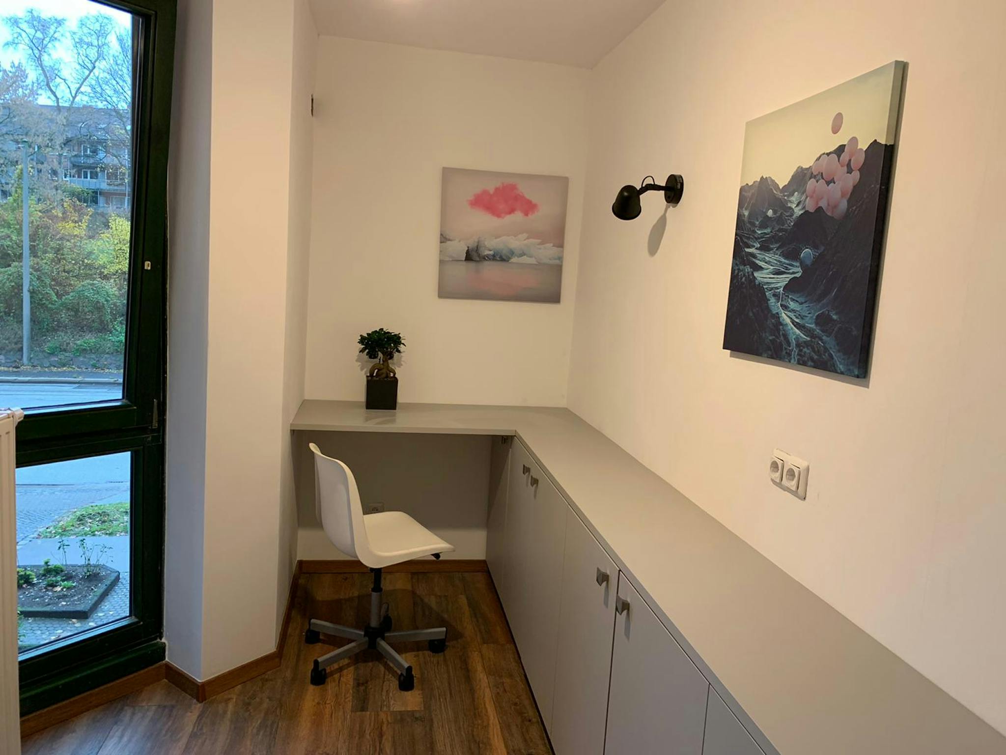 Im Schlafzimmer findet man ein bequemes Doppelbett (160x200cm), Im Wohnzimmer gibt es ein Sofa mit Schlaffunktion, Einbauschrank im Flur, Arbeitszimmer ist mit Einbaumöbel ausgestattet.