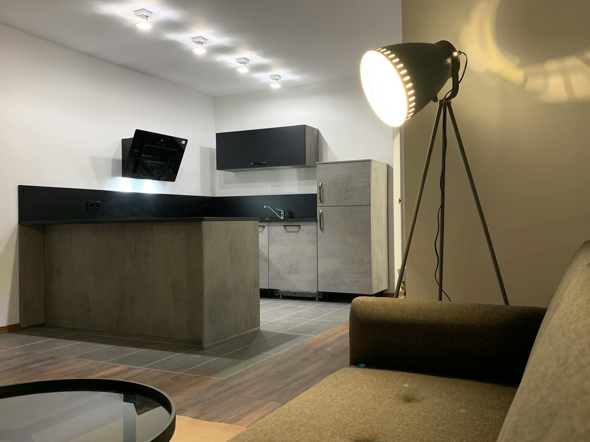 Die Wohnung verfügt über eine nagelneue Wohnküche für den interaktiven Spaß am Kochen, ein Schlaf-, ein separates Arbeitszimmer und ein Badezimmer mit Vollbad.