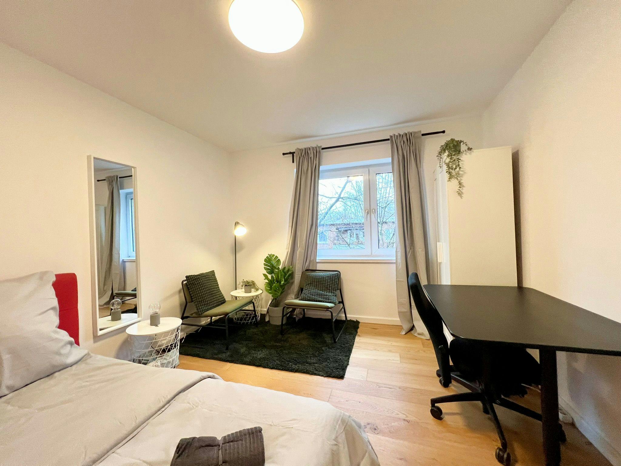 Non-SmokingNot allowedhis fully renovated apartment in Hamburg-Horn offers approx. 80 sqm of living space and combines comfort, functionality and a pleasant living atmosphere. The apartment features three well-proportioned rooms, a balcony, and a modern, fully equipped interior. Thoughtfully furnished and designed for everyday living, it comfortably accommodates up to 5 people, making it ideal for families, colleagues or longer stays. Key features: Fully renovated apartment Approx. 80 sqm of living space 3 rooms Balcony Modern, fully equipped furnishings Suitable for up to 5 people Whether for temporary living, business stays or family accommodation, this apartment offers a comfortable and practical home in a well-connected Hamburg location.