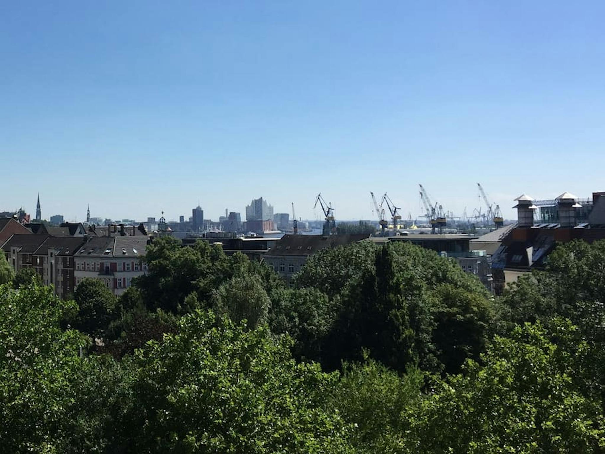 - direkte Aussicht von der Wohnung auf Elbe und Elbphilharmonie (das erste Foto ist der Ausblick von der Wohnung, die anderen Fotos von der gemeinsamen Dachterrasse)