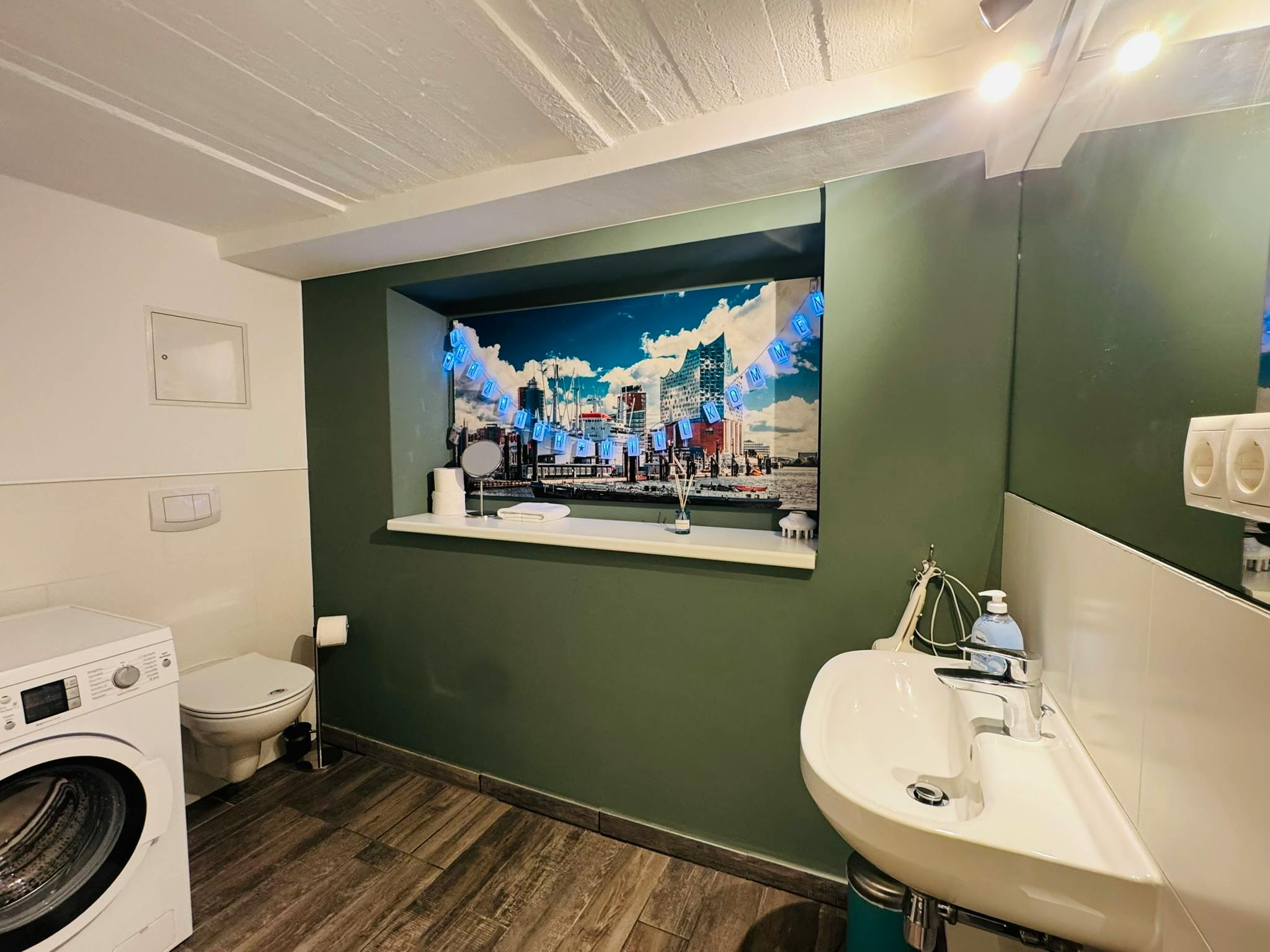 Non-SmokingNot allowedDas Eckgebäude Große Brunnenstraße 108 / Erdmannstraße 33 liegt mitten im Herzen von Ottensen. Zu Fuß sind in kürzester Zeit Läden, Cafés, Restaurants, Ärzte, Fitnesscenter, Kaffeeröstereien und Parks erreichbar. In fußläufiger Entfernung liegen die Ottensener Hauptstraße (Reh Bar und Reisebar) und der Alma-Wartenberg-Platz 300m, sowie das Zeisekino 200m, Bahnhof Altona 850m und das Altonaer Theater 800m. Der Elbstrand mit den Parks Altonaer Balkon, Heinepark und Donnerspark sowie Fischmarkt sind ebenfalls fußläufig in nur 14min zu Fuß 1100m erreichbar. Das Apartment liegt im Erdgeschoss und Souterrain mit 3 Zimmern über 2 Ebenen mit eigener Terrasse, Sauna und Kinoraum. Es gibt ein Duschbad mit Waschmaschine und eine offene Einbauküche zum Essbereich mit Geschirrspüler, Kühlschrank, Ofen und Herd alles voll ausgestattet. Vom nahen Bahnhof Altona sind mit der S-Bahn die Innenstadt und auch der Flughafen leicht zu erreichen. Viele Buslinien fahren in alle Stadtteile, Leihfahrräder sind in der Nähe verfügbar, so dass man in Hamburg kein Auto braucht.