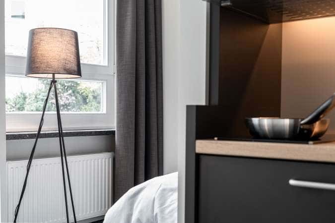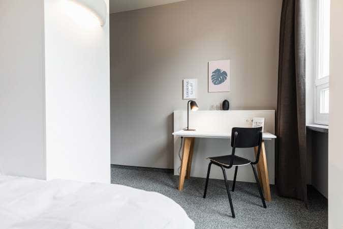 The Student Studio apartments have about 20 m² and are fully equipped with everything you will need in your daily life. A kitchenette, a desk and free WiFi as well as a 120cm wide bed welcome you to stay and enjoy your life as a student.