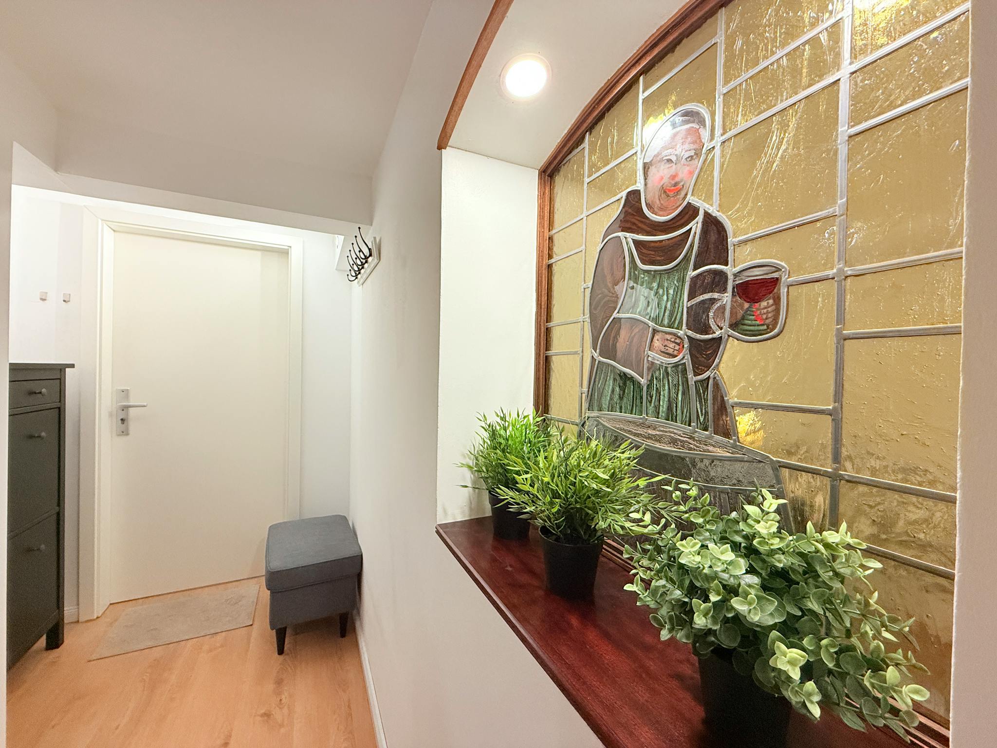 The apartment is located on the -1 Floor of a family house, but it is light and warm in a friendly neighborhood.