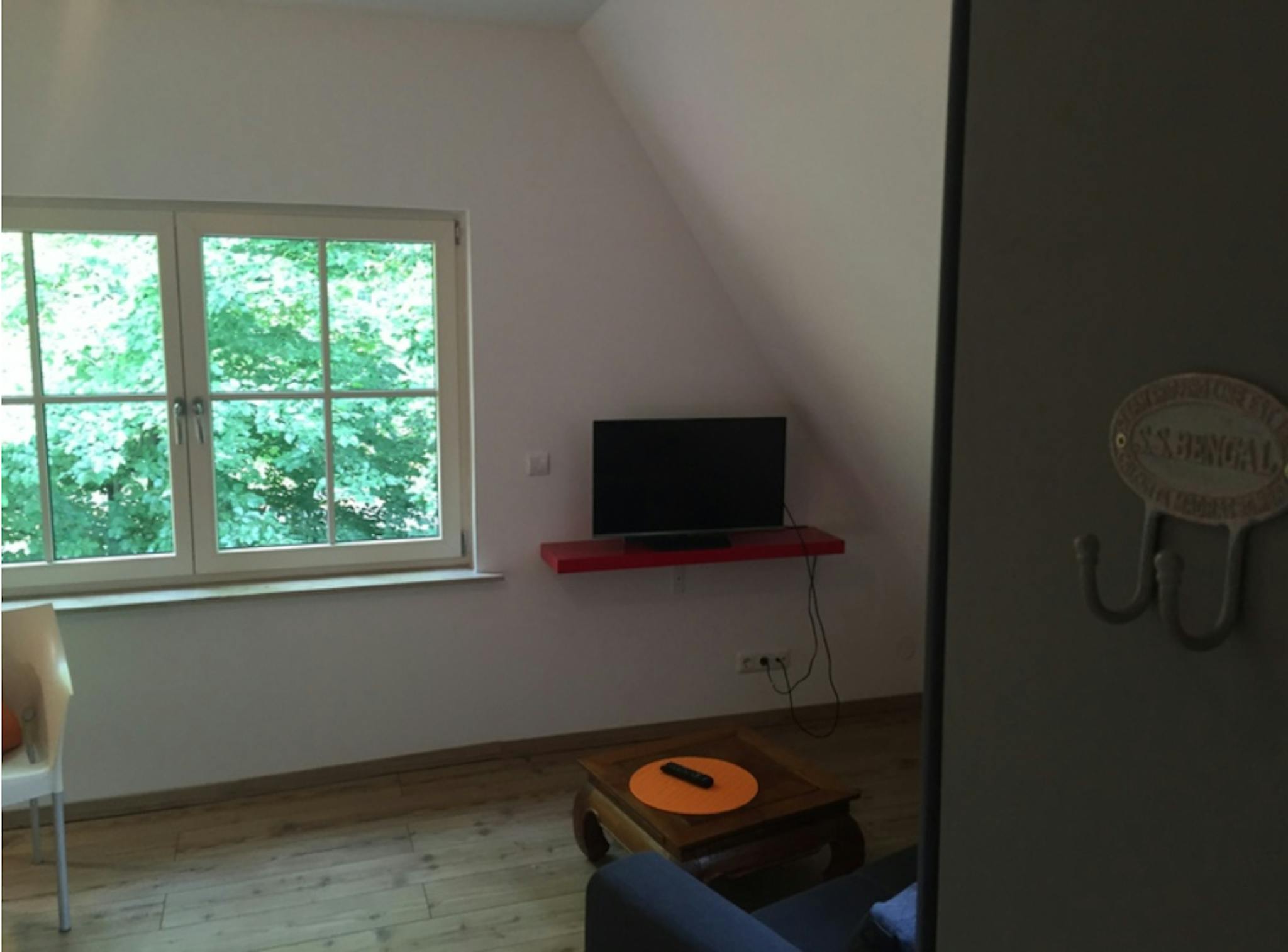 Living & Bed-room: 20m2, Dining Corner, Flatscreen TV, Closet, Makeup/working-desk, comfortable sleeping Couch, big bed (160x200), one Person bed (80x200), LED TV and Ste(hidden)oundsystem. Further, the sleeping Couch can be adjusted to a size of 110x190cm.