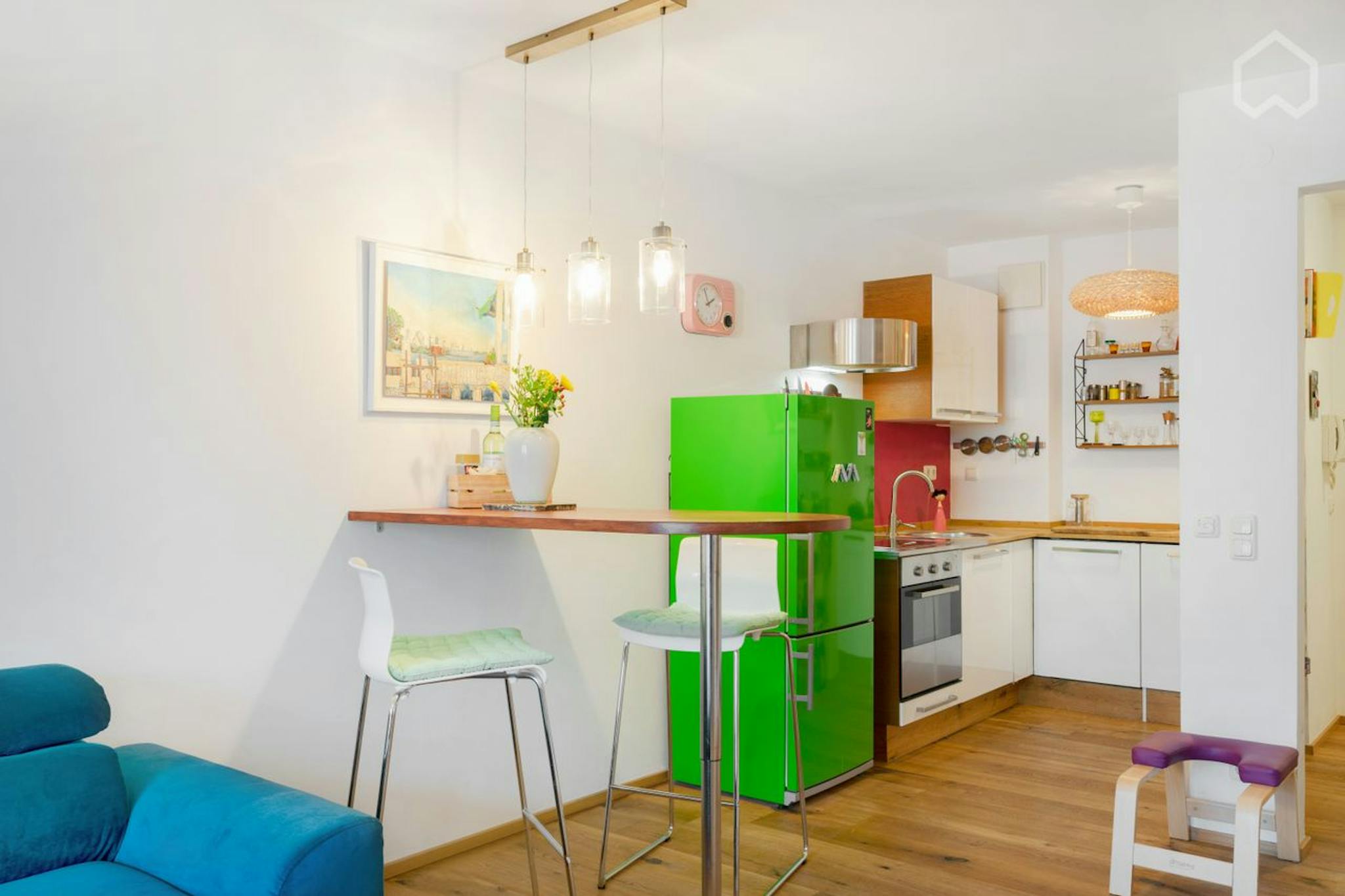 The apartment is fully equipped and furnished, you can move in comfortably and without any own expenses. Oven, toaster, electric kettle, ceramic hob, refrigerator, dishwasher and washing machine. Heating costs, electricity, water, internet, landline and house fees are included. No additional costs. Bedroom with completely new luxurious box spring bed with ergonomic mattress (32 cm).