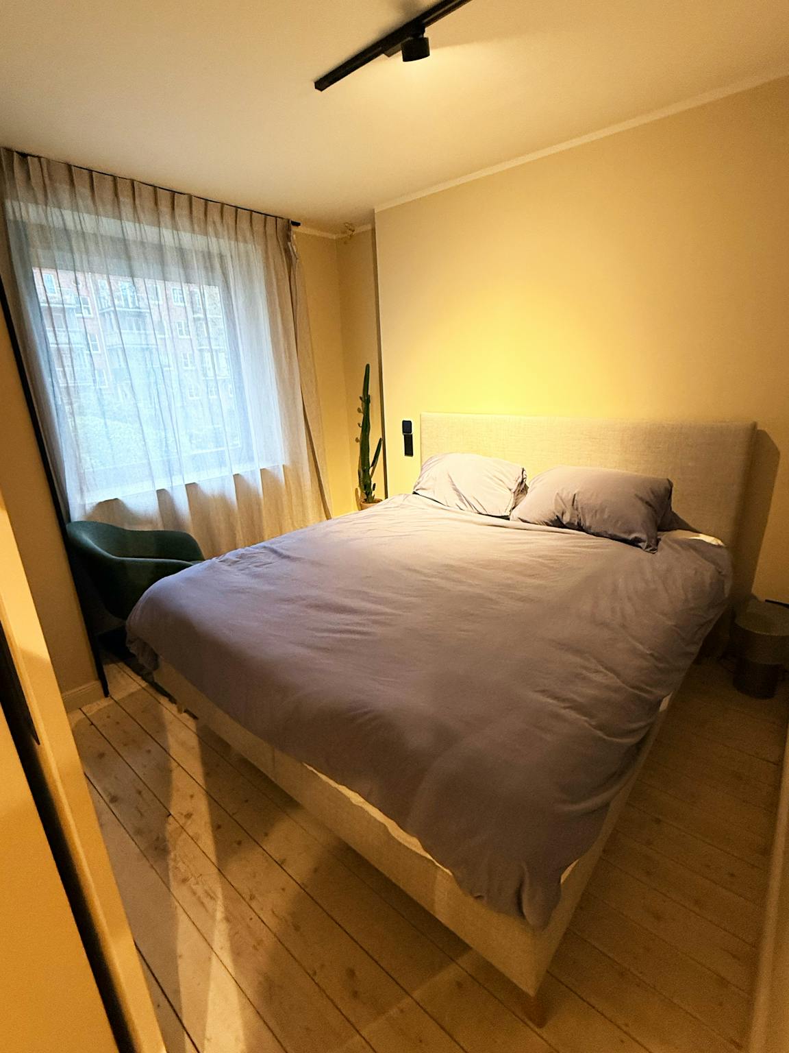Das Schlafzimmer liegt ruhig zur Hofseite – ein eigener Raum. Altholzdielen, gedämpftes Licht, ein großzügiges Queen-Size-Boxspring Bett. Durch funkgesteuerte Rollläden schläfst Du hier im komplett abgedunkelten Raum – wegen der Longevity oder der letzten Bartour. Draußen mitten im Schanzenviertel. Innen im eigenen Design-Safe-Space. So geht Home away from Home.