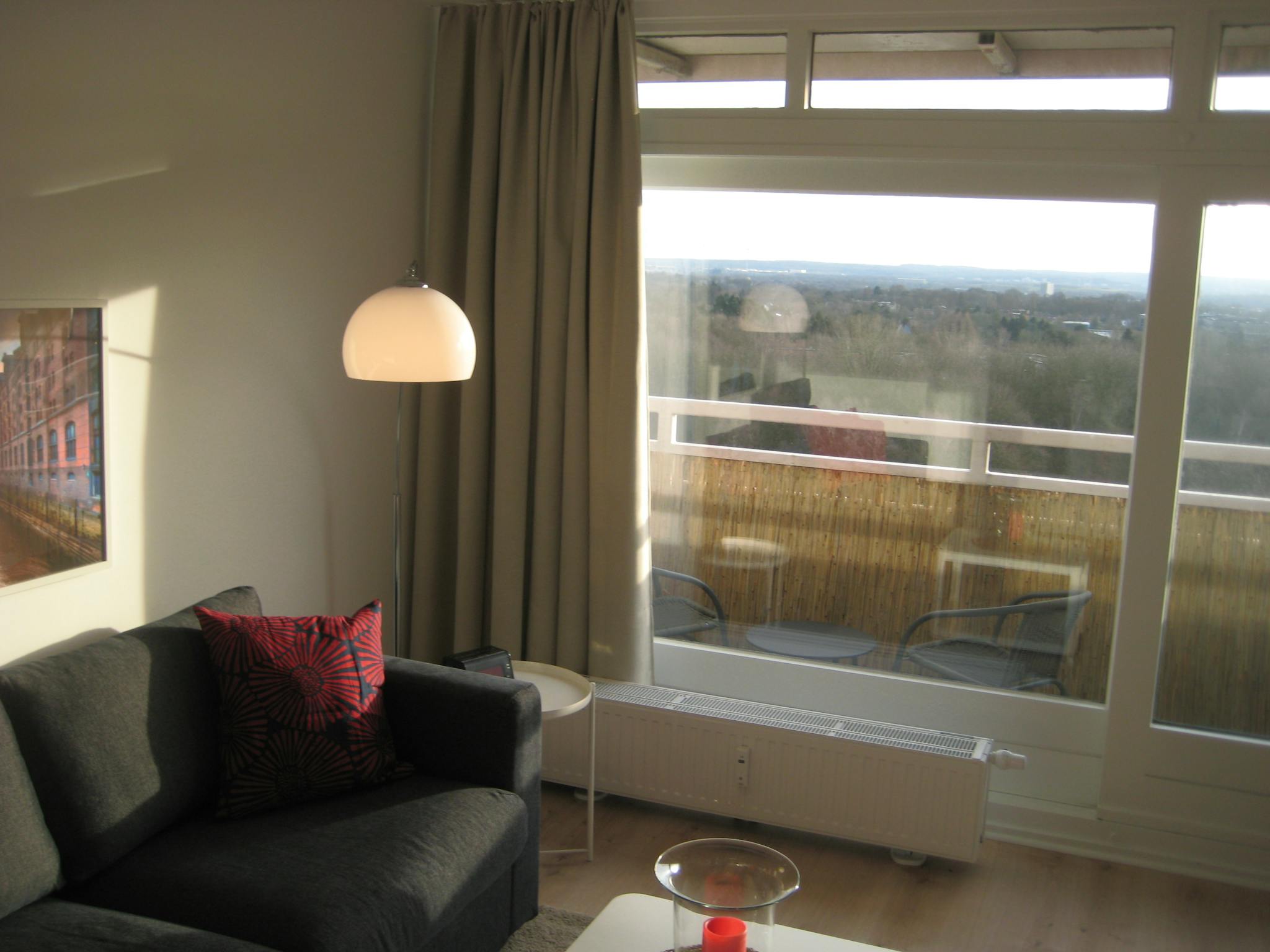 1-Room-Apt., appr 350sqft, 12.Floor, furnished, Elevator, completely modernised, Bath & Kitchen entirely new, built-in 3-door-wardrobe, new laminate flooring, 50sqft Balkony facing south w. panoramic views of Hamburg & Harbour, Car park, Bicycle storage (locked), coin operated laundry and drying room,rubbish chute