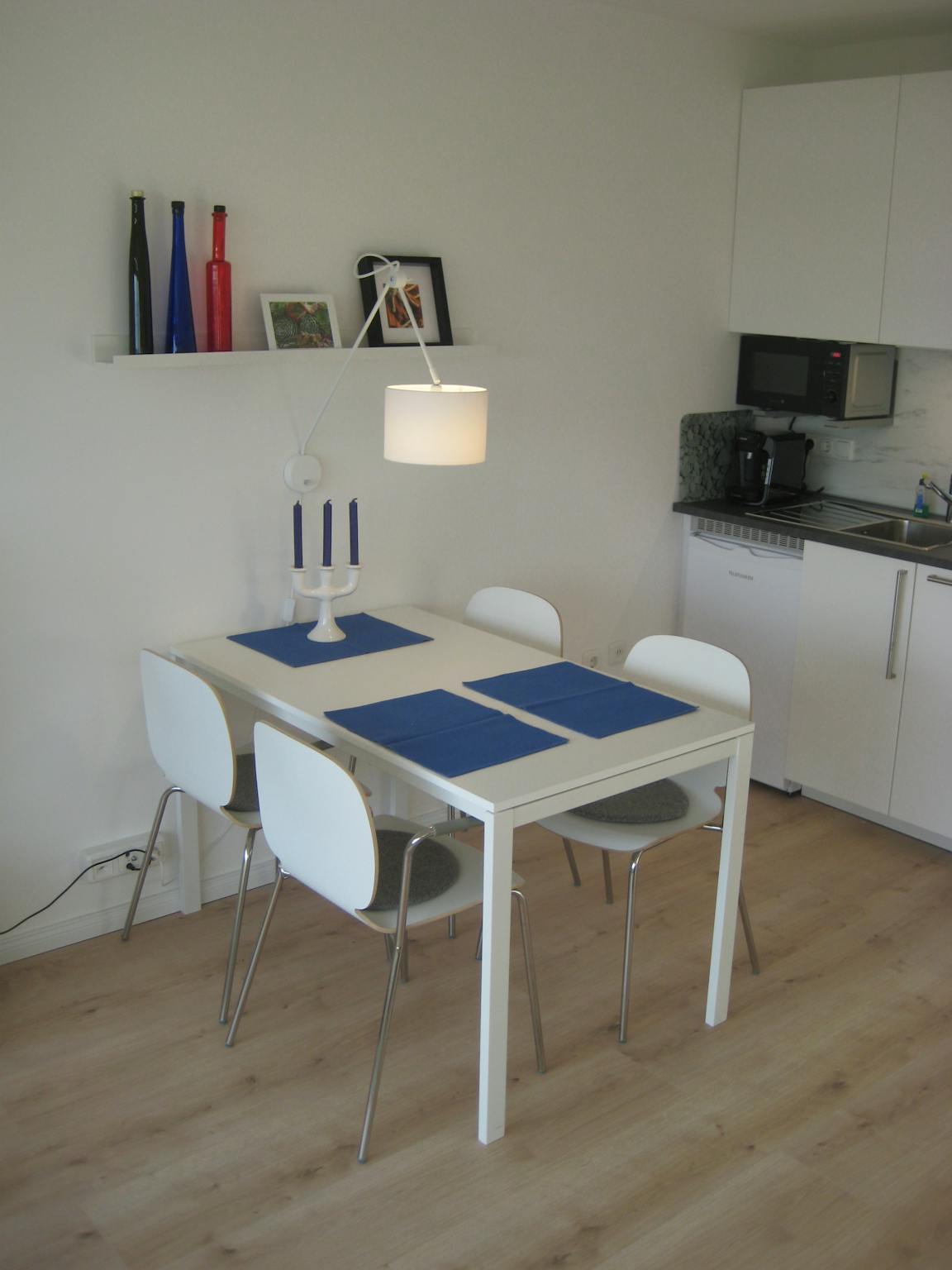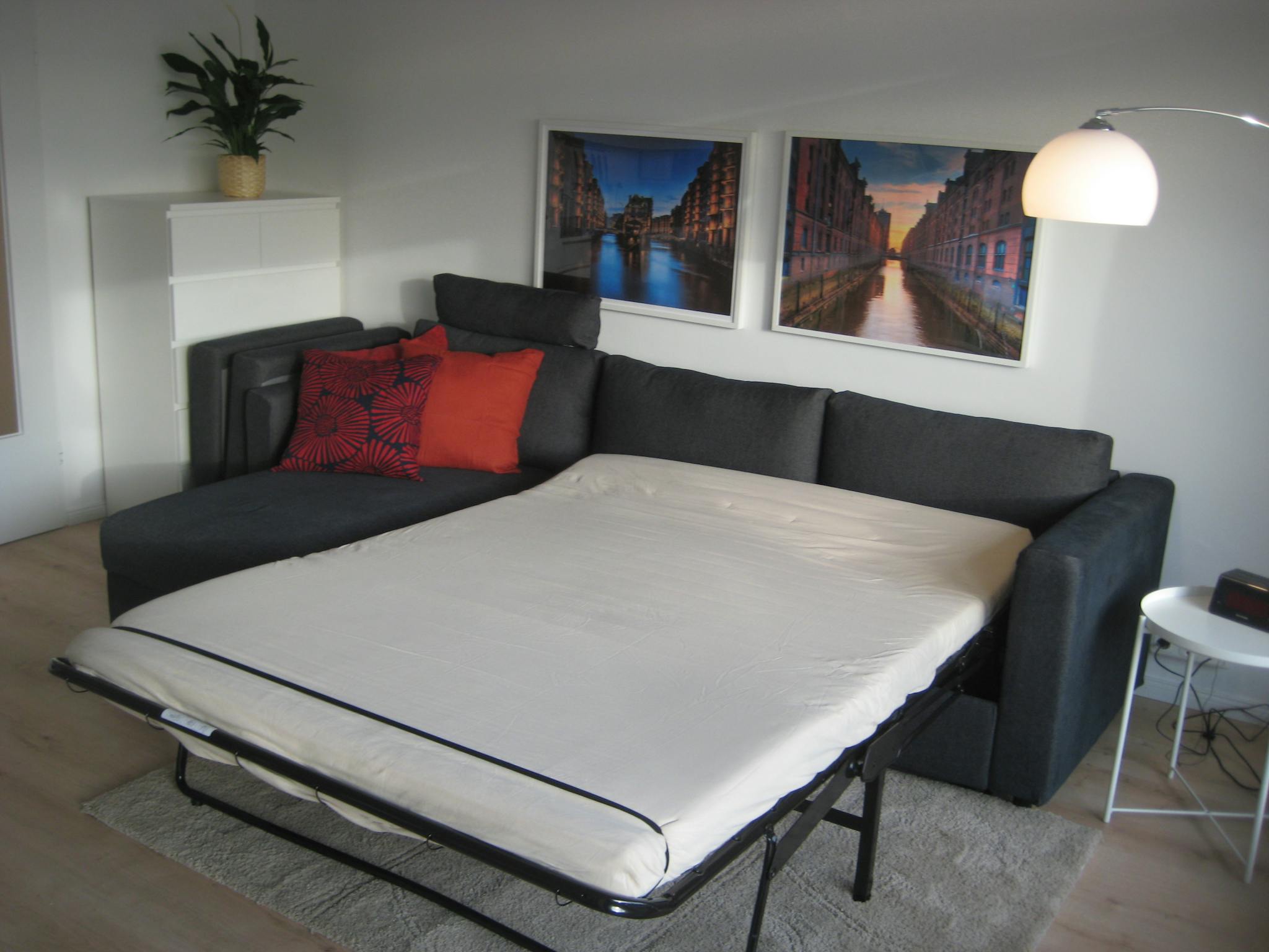 completely furnished with new furniture, 4 pers. dining table, couch with box bed (1,40m wide) and bed box, 48"-TV, drawer cabinets