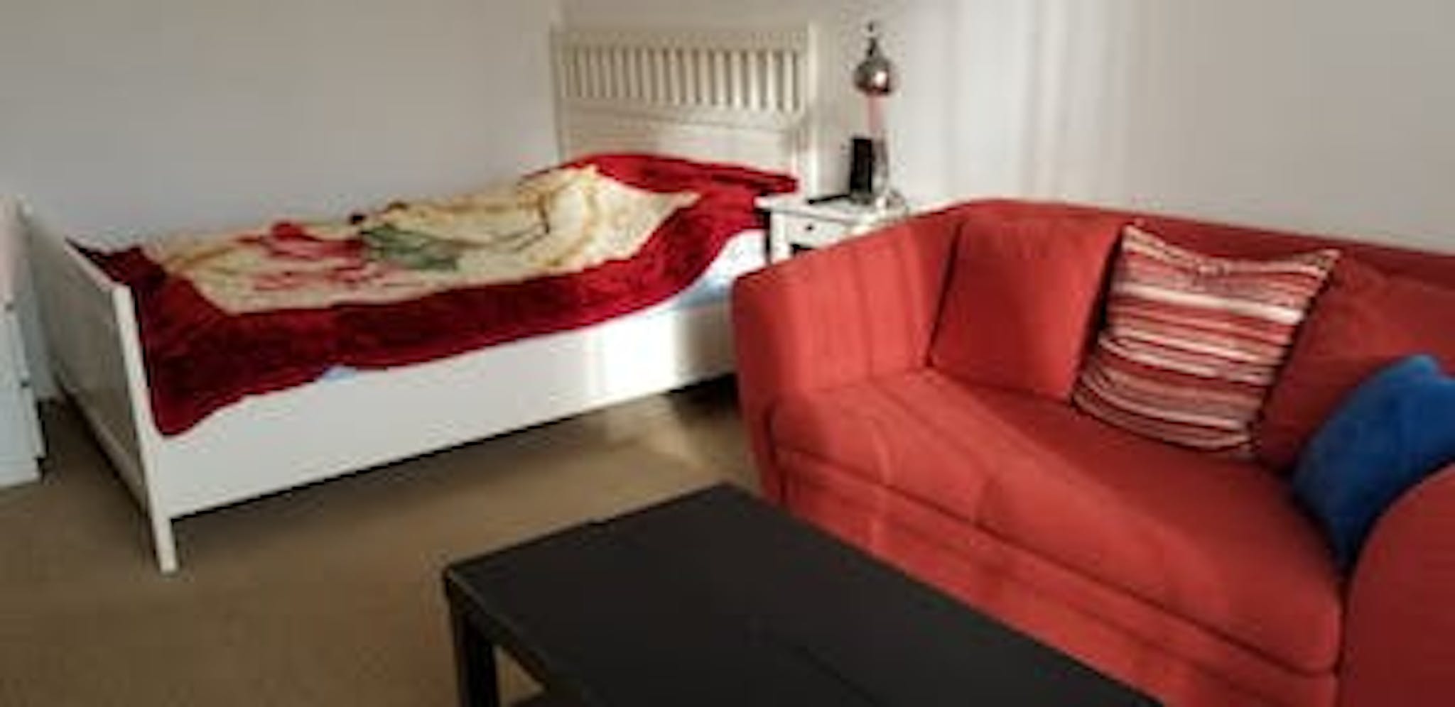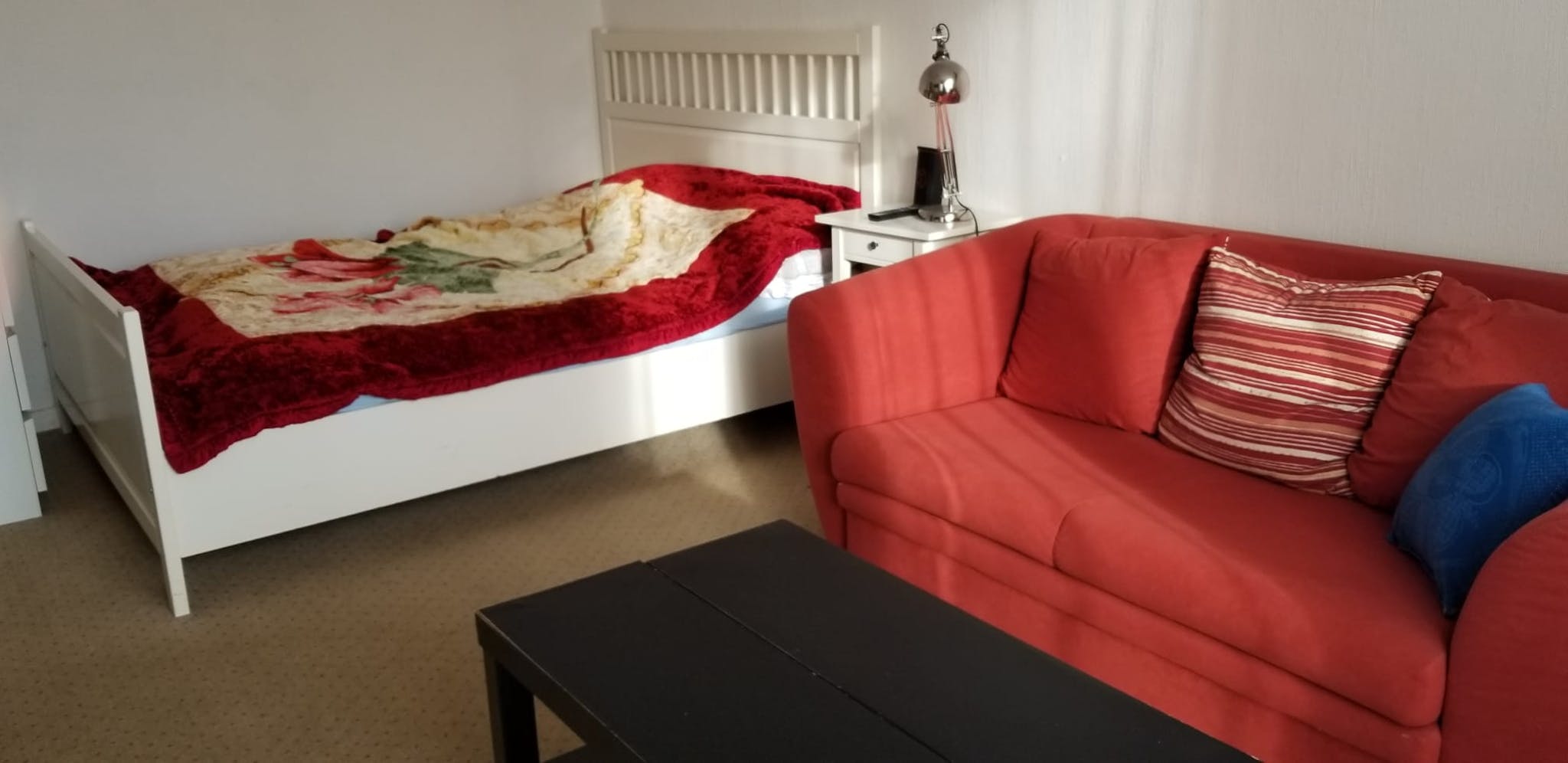 The appartment has Kitchen, Bathroom, Toilett and Bedroom, full furnitured with a big balcony.