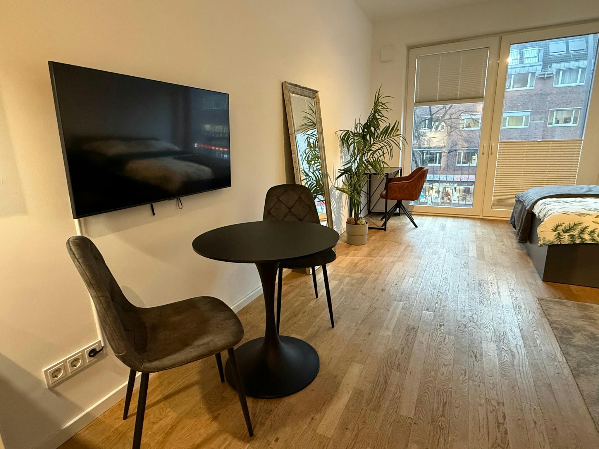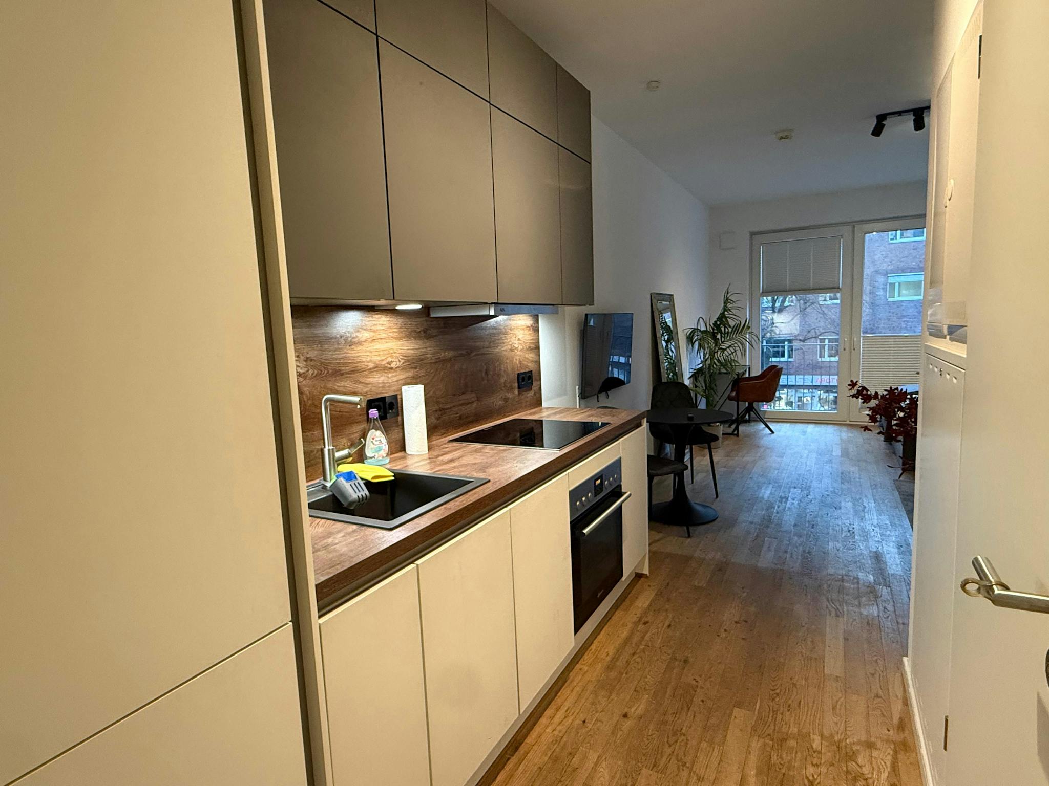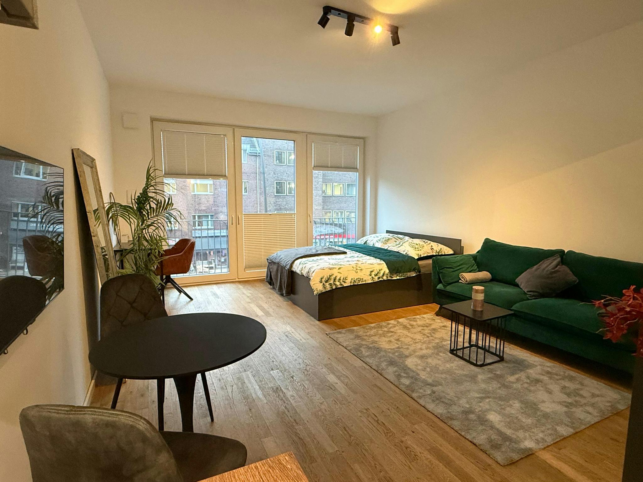 Dieses neu errichtete Apartment befindet sich an der bekanntesten Strasse im Herzen von Barmbek-Nord. Von hier aus erreichen Sie zahlreiche Lokalitäten, Einkaufsmöglichkeiten und Hamburgs Highlights zu Fuß oder mit den öffentlichen Verkehrsmitteln, die Sie in 3 Gehminuten erreichen. Die Wohnung ist in zwei gemütliche Bereiche aufgeteilt und mit Fußbodenheizung ausgestattet. Das Studio hat große Fenster und ist exklusiv & modern eingerichtet. Mit viel Liebe zum Detail wird eine besondere Atmosphäre geschaffen. Das Highlight des Apartments sind die großen Fenster, die sich komplett öffnen lassen und für Balkonfeeling sorgen.