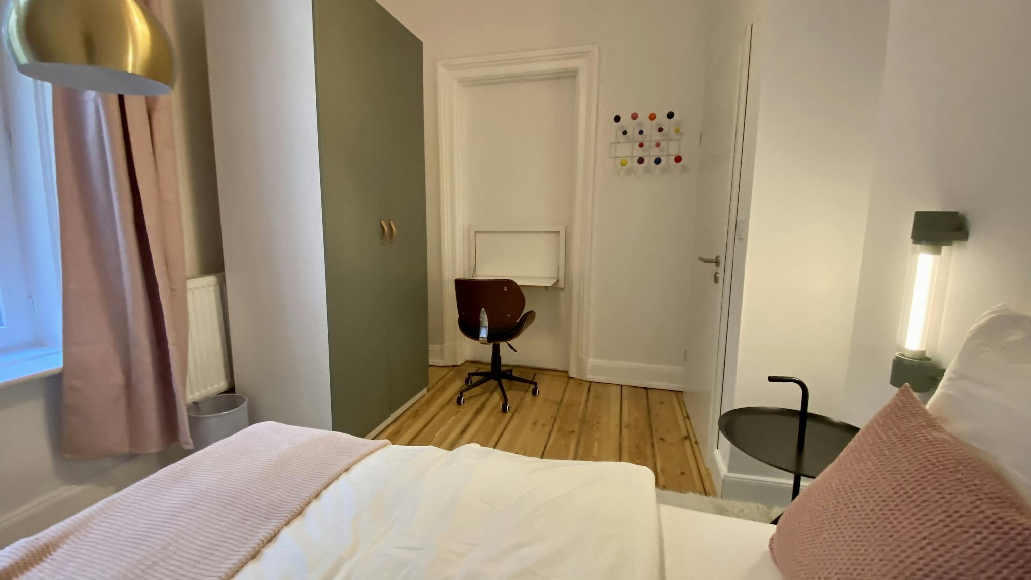 Double-bed, wardrobe, desk and chair, art and an armchair, all in your room. You get weekly flat cleanings, washer-dryer in the apartment (iron and ironing board too), plus utilities like media, electricity, heating and WIFI. Sounds like everything? It’s not: We also provide all the little household essentials, like tableware and kitchen equipment from bottle opener to the espresso spoon. Mostly we provide a common lounge area or dining zone where you can hang out with your friends and flat-mates.