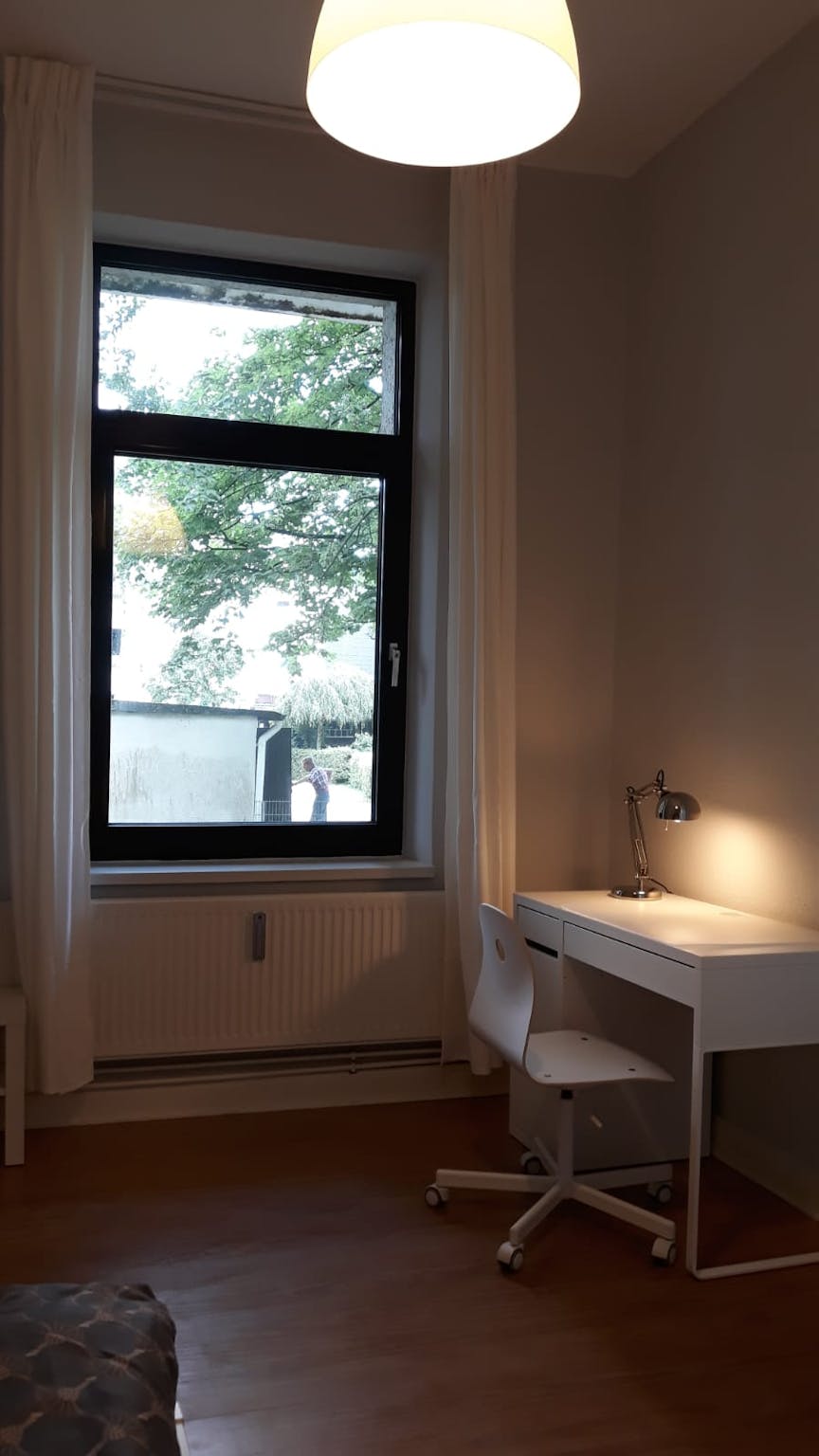 Das sanierte Zimmer mit Gartenblick befindet sich im Hochparterre eine kernsanierten Altbauwohnung.