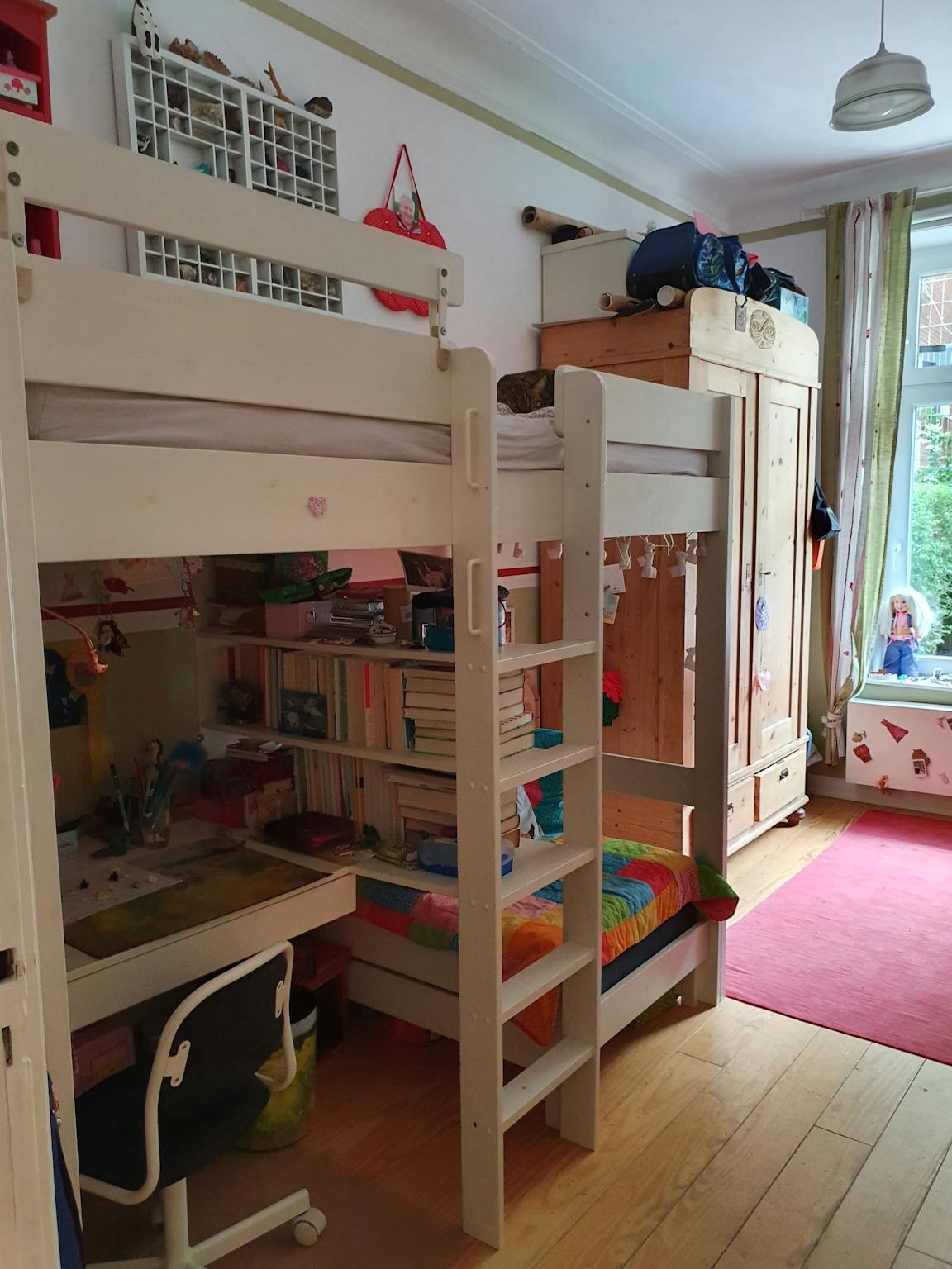 Es gibt zwei Kinder-/Jugendzimmer, einmal mit Hochbett, einmal mit ausziehbaren Schlafbett, beide mit Blick zum Garten, ausgestattet jeweils mit Schreibtisch, Bücherregal, zusätzlichen ausziehbaren Schlafsesseln und Kleiderschrank. Spielzeug und Kinderbücher wären vorhanden.