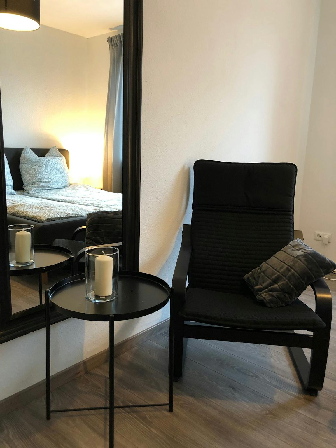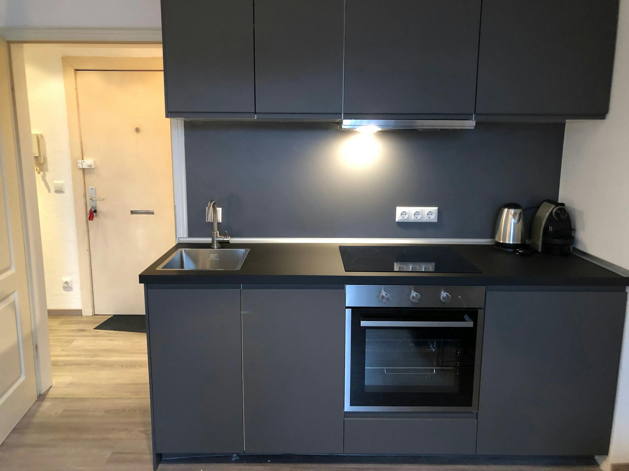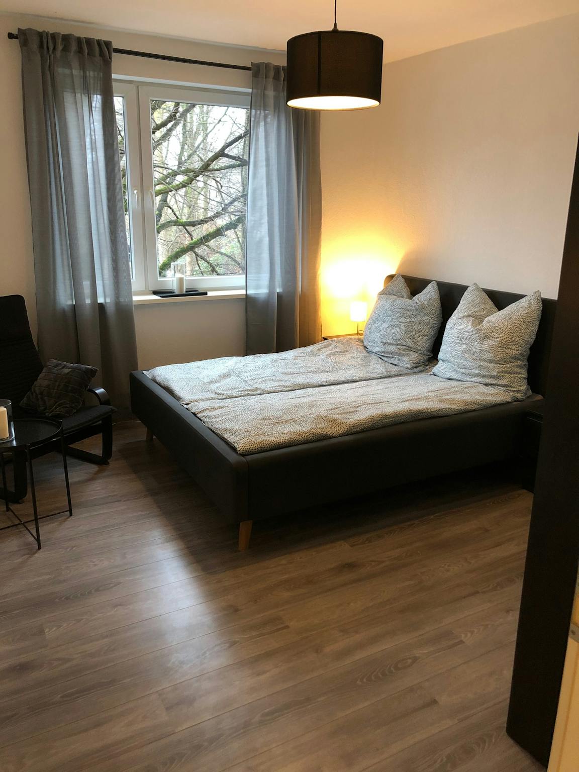 A stylish separated bedroom, 1 separated living room/kitchen and 1 shower/bathroom.