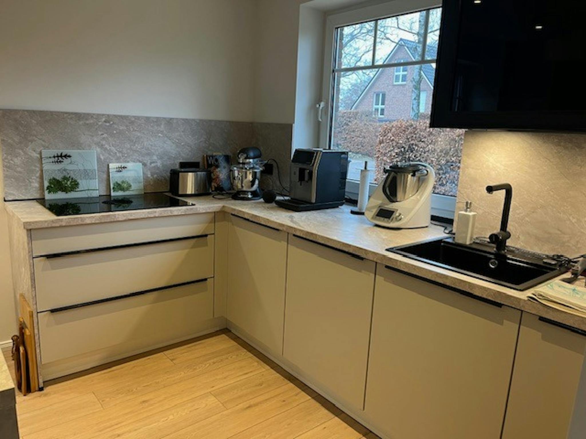 Die neue Küche bietet sämtlichen Komfort und der eigene Kühlschrank ist ebenfalls vorhanden. Weiterhin befindet sich im Keller eine separate Waschmaschine zur Privat-Nutzung.