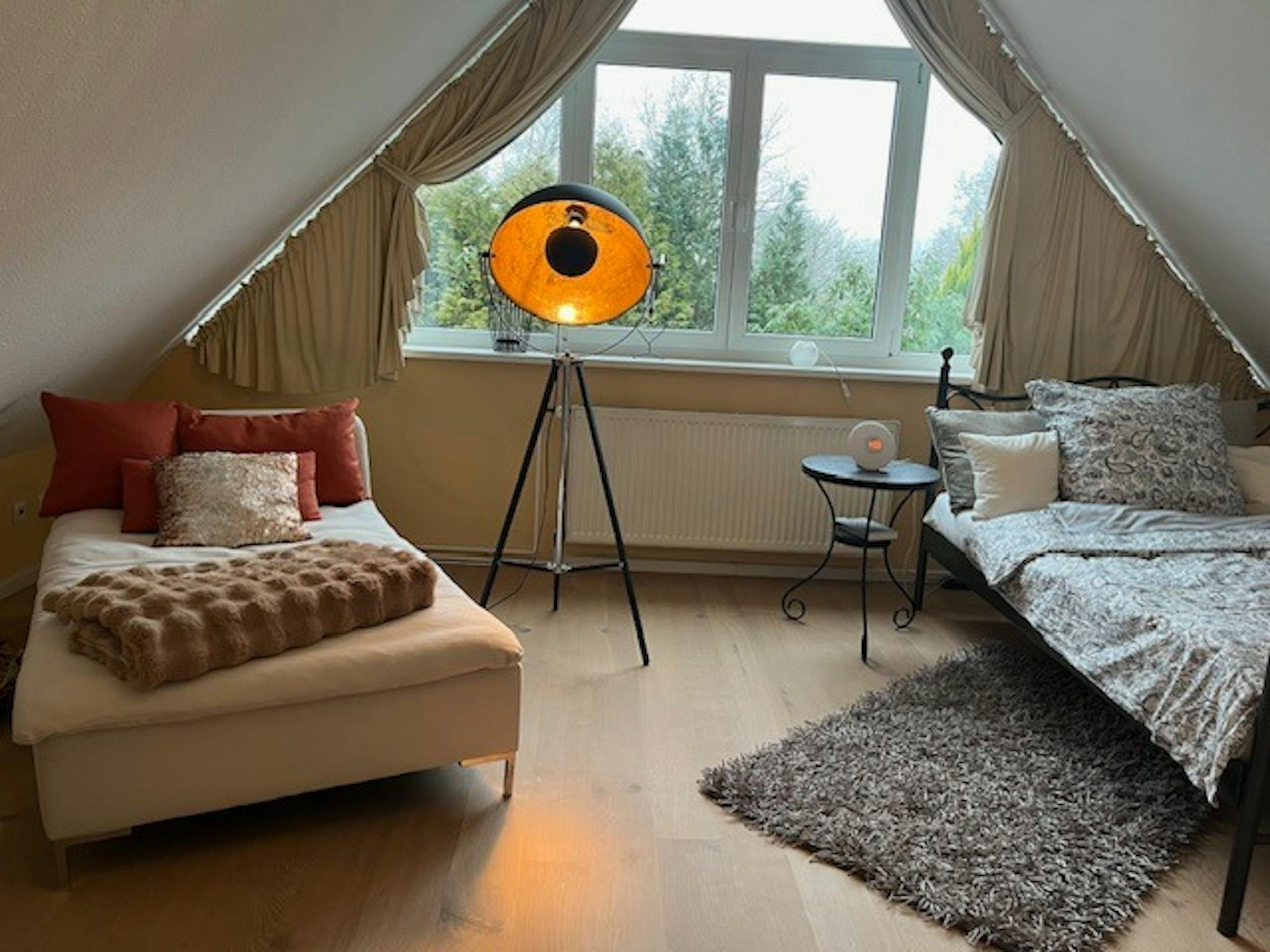 Das Zimmer ist 19 m2 groß, befindet sich im gemütlichen Dachgeschoss und ist voll möbliert (Bett, Sofa, Kommode, Stehlampe, Deckenlampe, Teppich, Gardinen). Ab (hidden) wird es zur Miete angeboten.