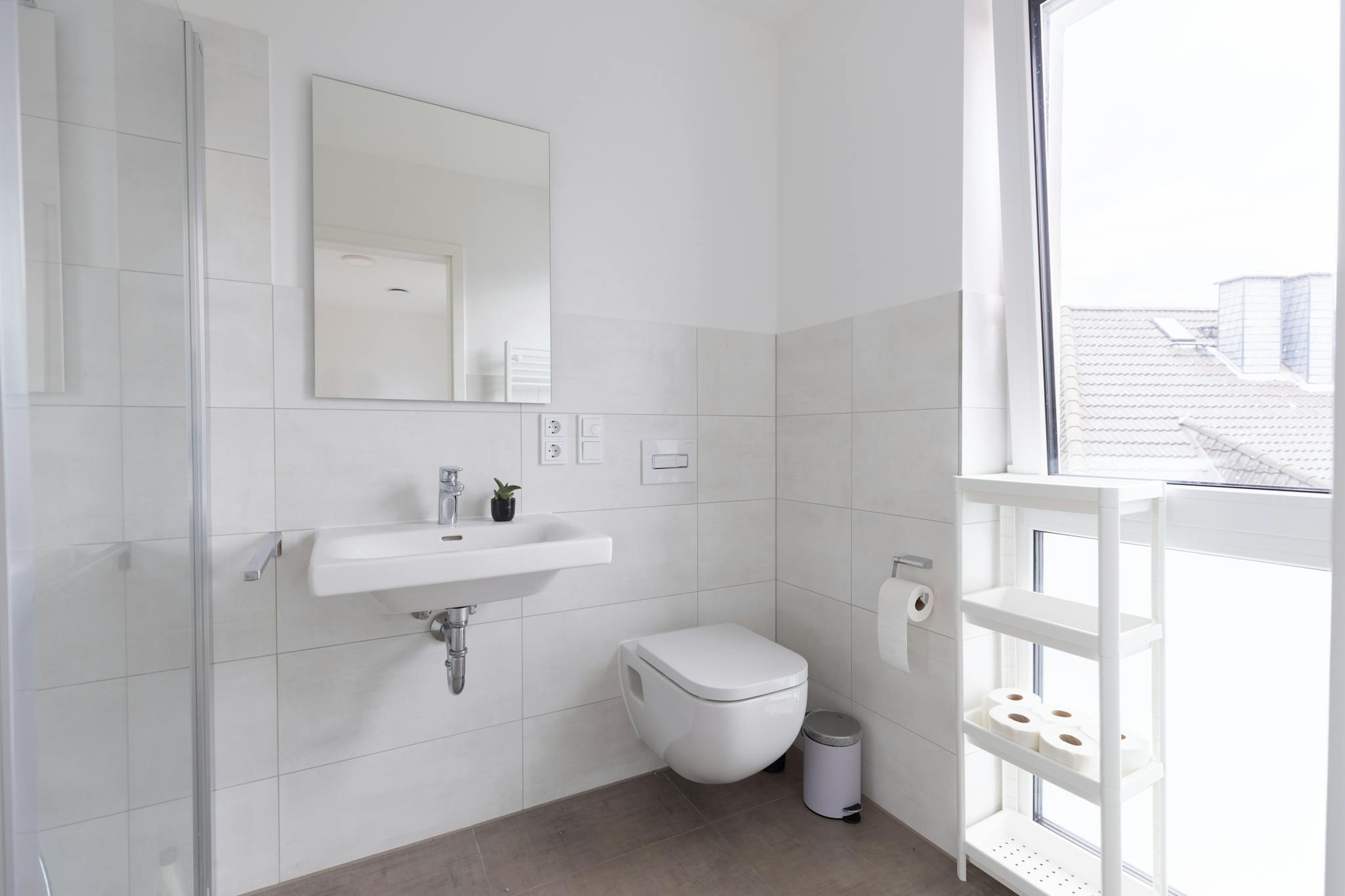 The kitchen, the living room, the laundry room, a storage room in the basement and the garden is intended for shared use with 2 other parties. In total, the house has 2 bathrooms with bathtub and shower as well as 1 additional guest toilet.